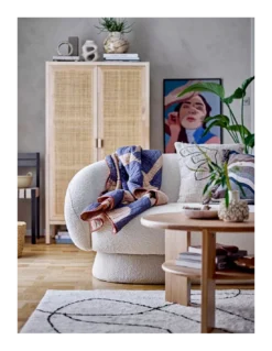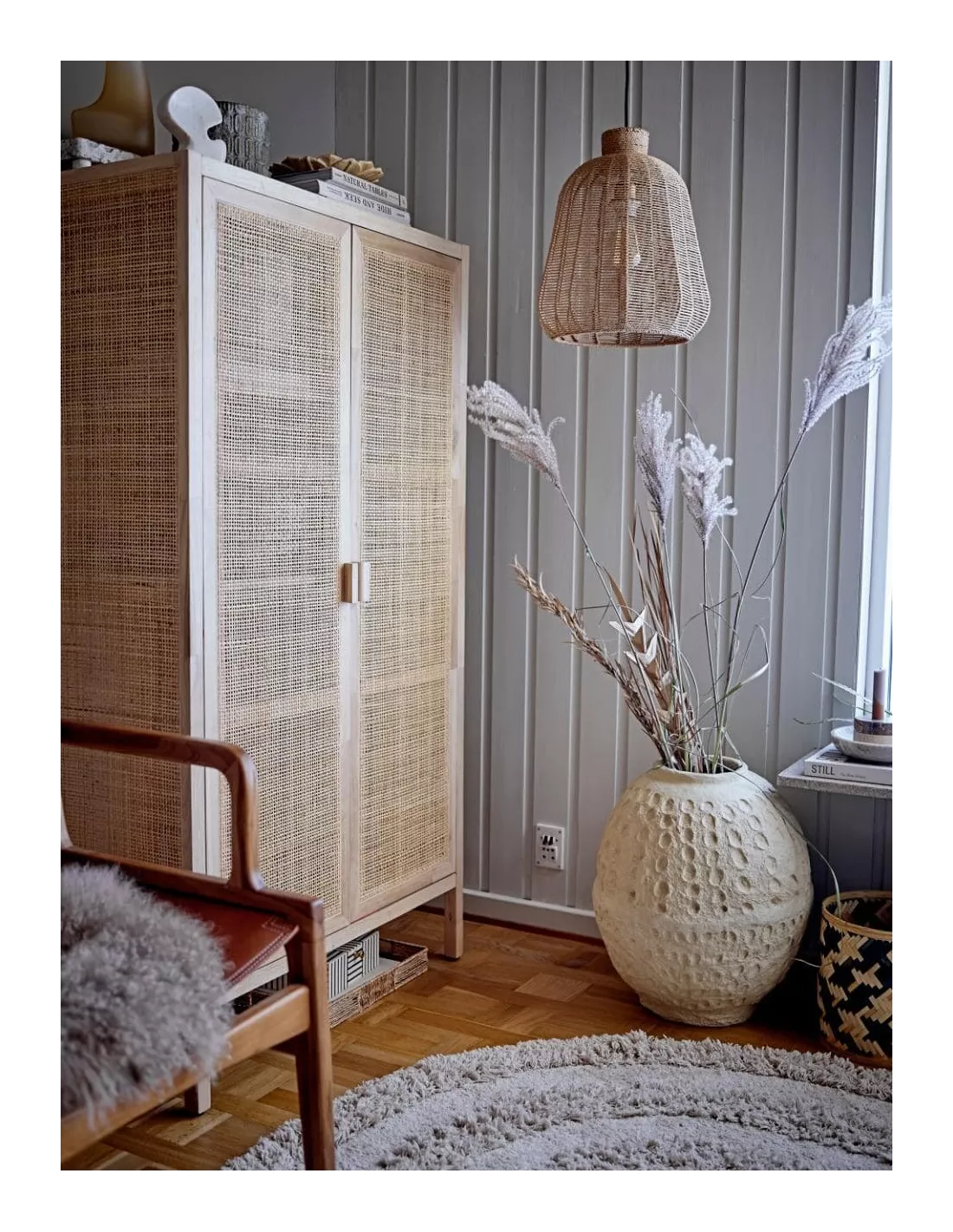L’armoire Marikka de Bloomingville crée une atmosphère chaleureuse et nordique dans votre intérieur avec le design sympa en bois de gemelina. Elle a un aspect léger avec ses portes en cannage semi-transparent. Elle prendra sa place aisément dans un intérieur scandinave, design ou contemporain.