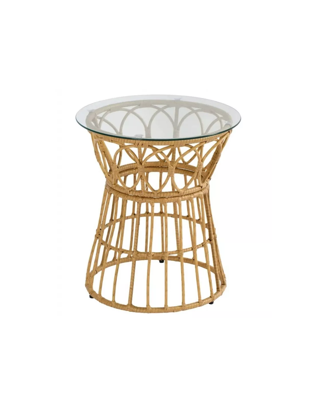 Bout de canapé indoor/outdoor en rotin synthétique et verre