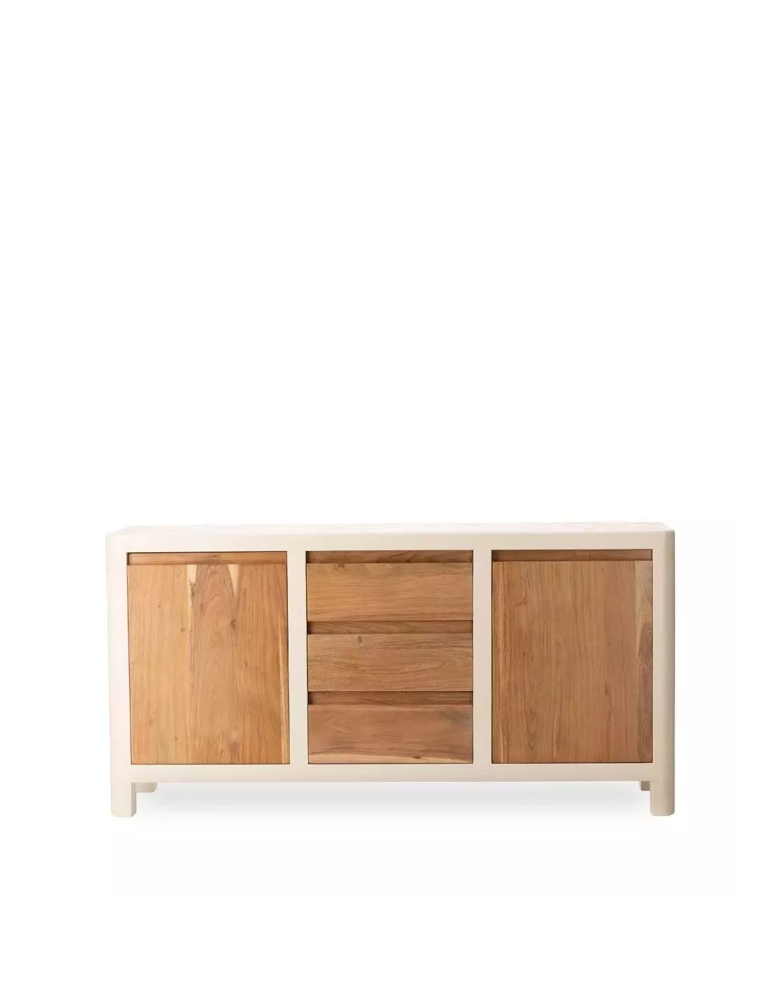 Buffet écru et bois 2 portes 3 tiroirs 160cm