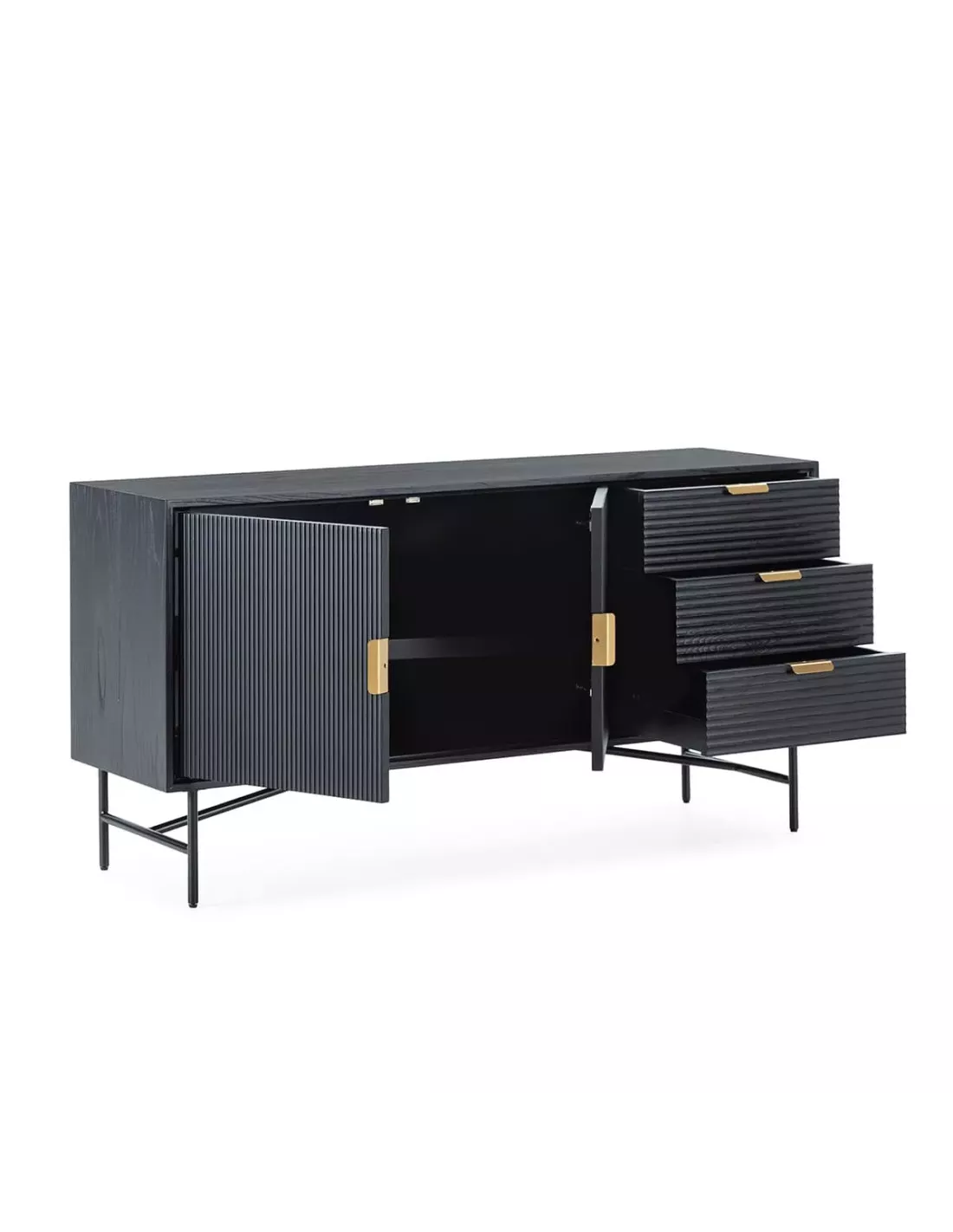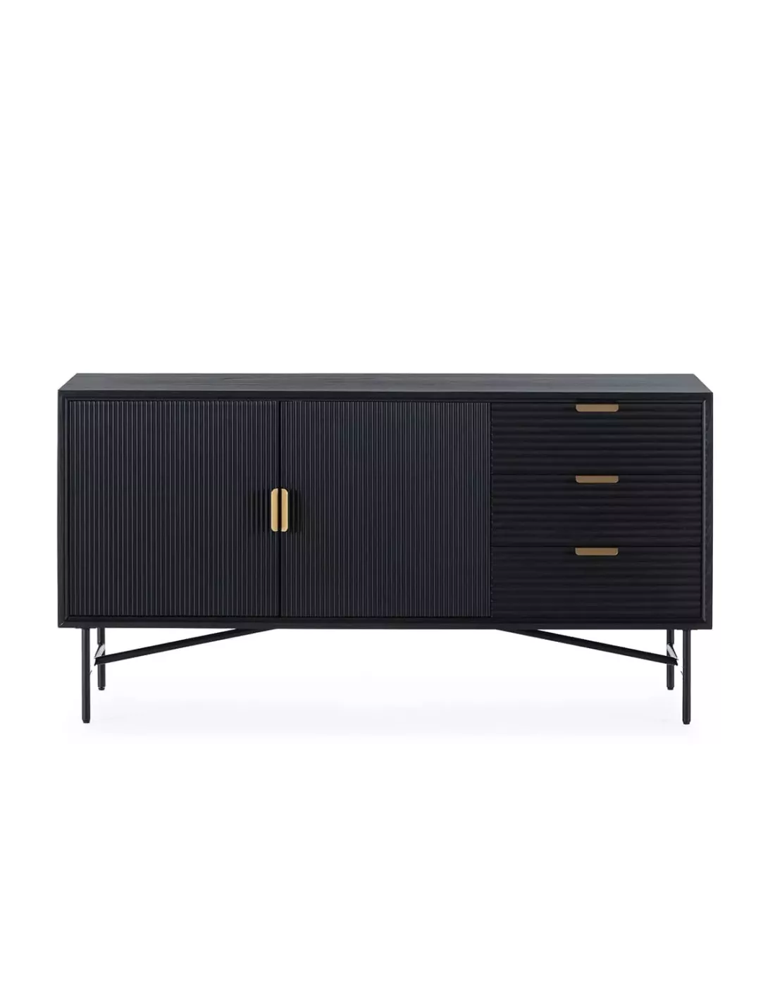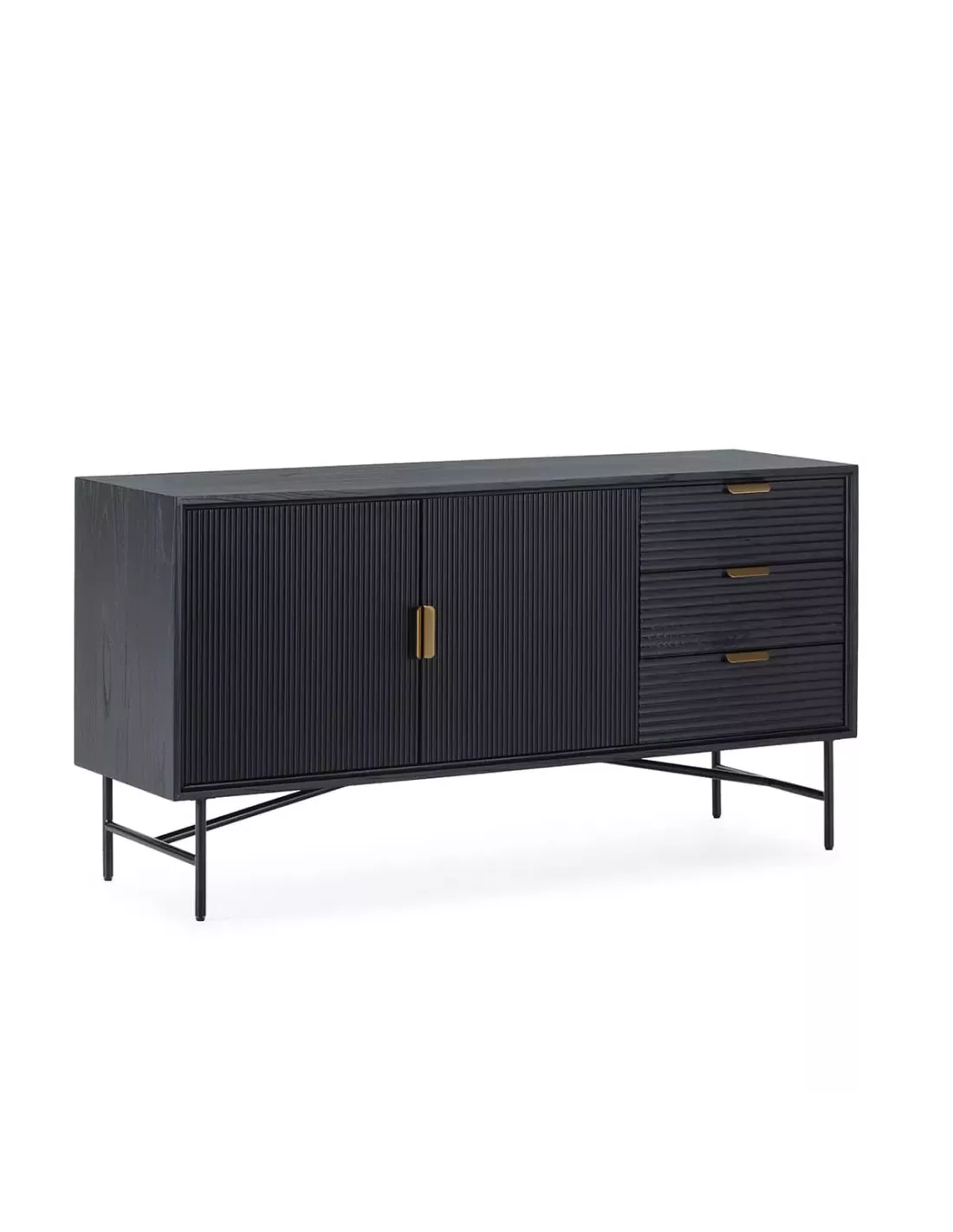 Buffet noir 2 portes 3 tiroirs et métal doré 154cm, Thai Natura