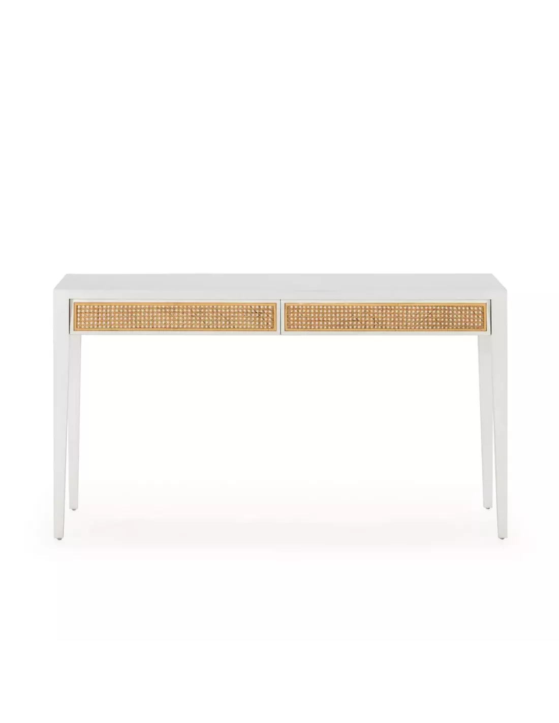 Réalisé en bois de cèdre issu de forêts durables, ce bureau arbore une finition blanche qui lui confère un aspect sophistiqué et intemporel. Les panneaux de cannage qui habillent les façades des tiroirs apportent une note naturelle et tendance, créant un contraste harmonieux avec la teinte blanche.