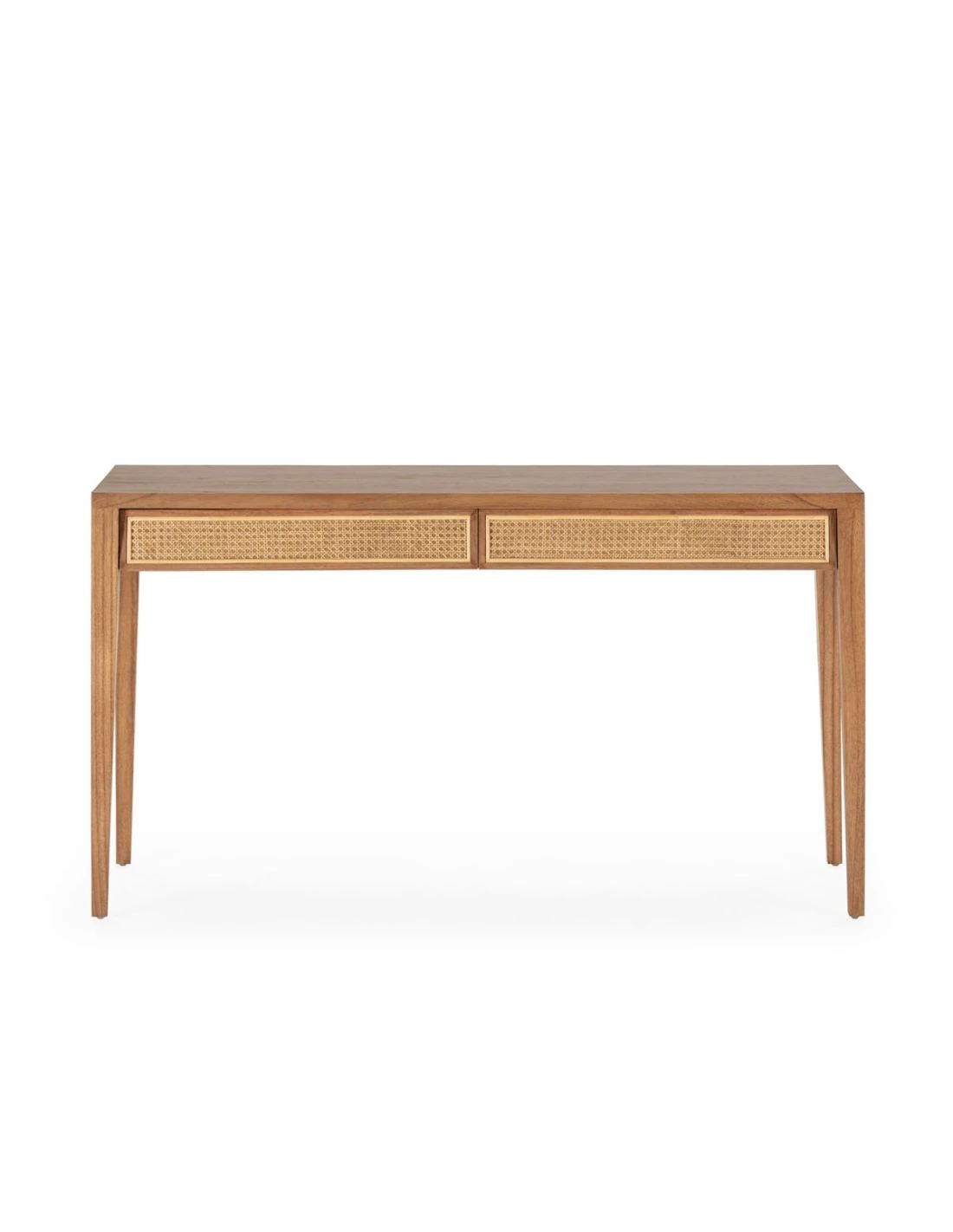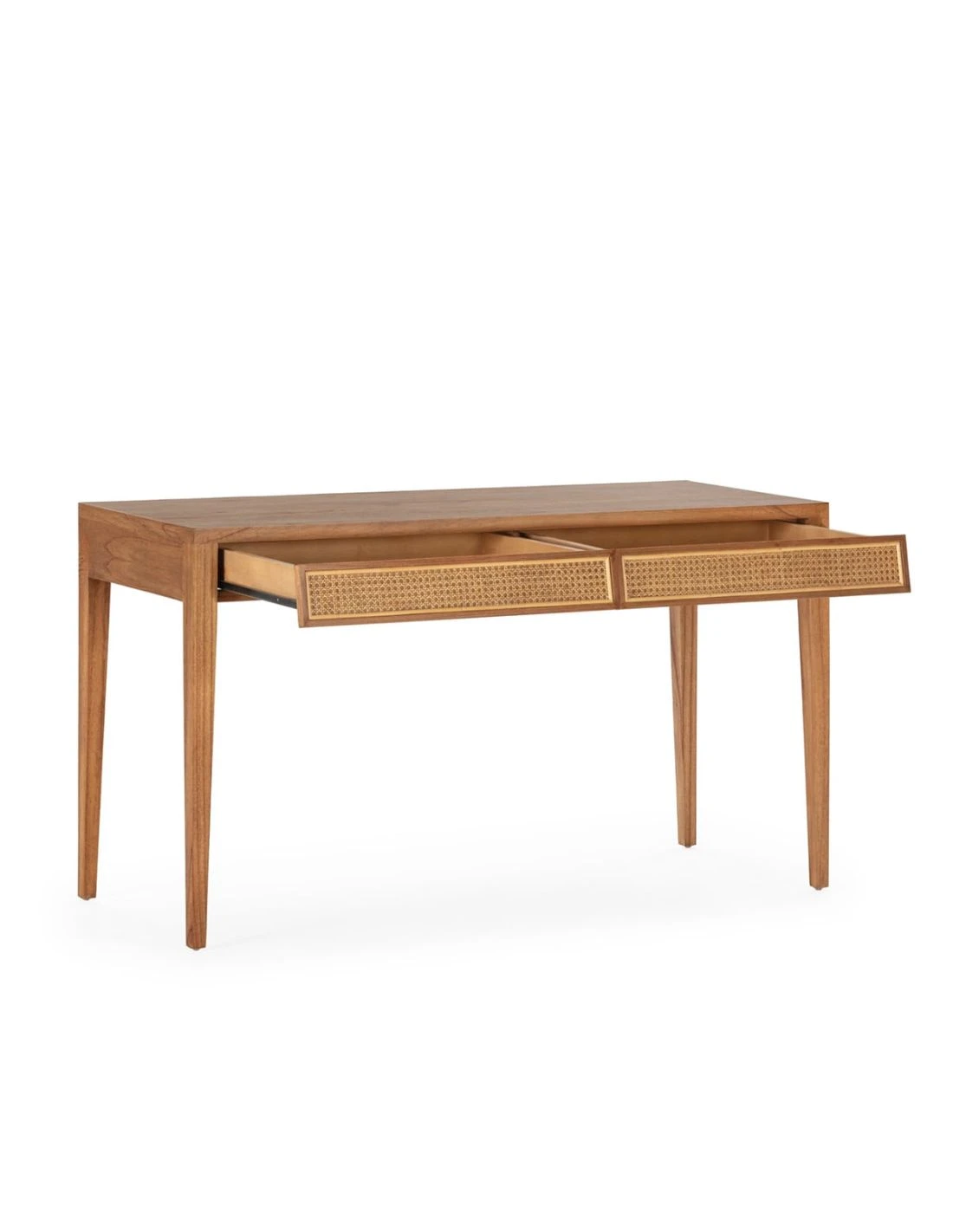 Bureau naturel 2 tiroirs en bois de cèdre et cannage, Thai Natura