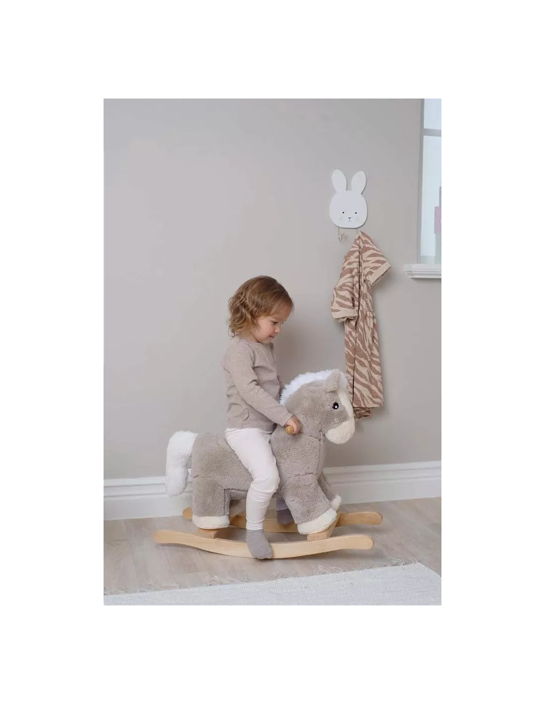 Cheval à bascule en bois et revêtement 100% polyester, JaBaDaBaDo