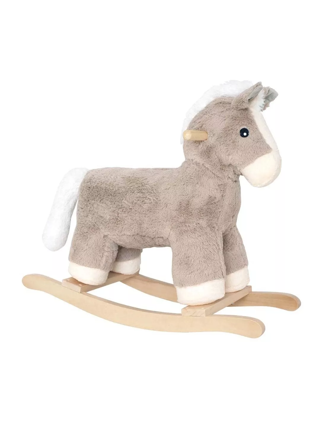 Adorable cheval en peluche qui deviendra un nouveau compagnon de votre enfant qui partira pour des aventures passionnantes avec son nouvel ami ! Le cheval est doux et confortable pour s’asseoir et possède deux poignées faciles à saisir. Parfait comme cadeau d’anniversaire ou de Noêl. Structure robuste en bois.