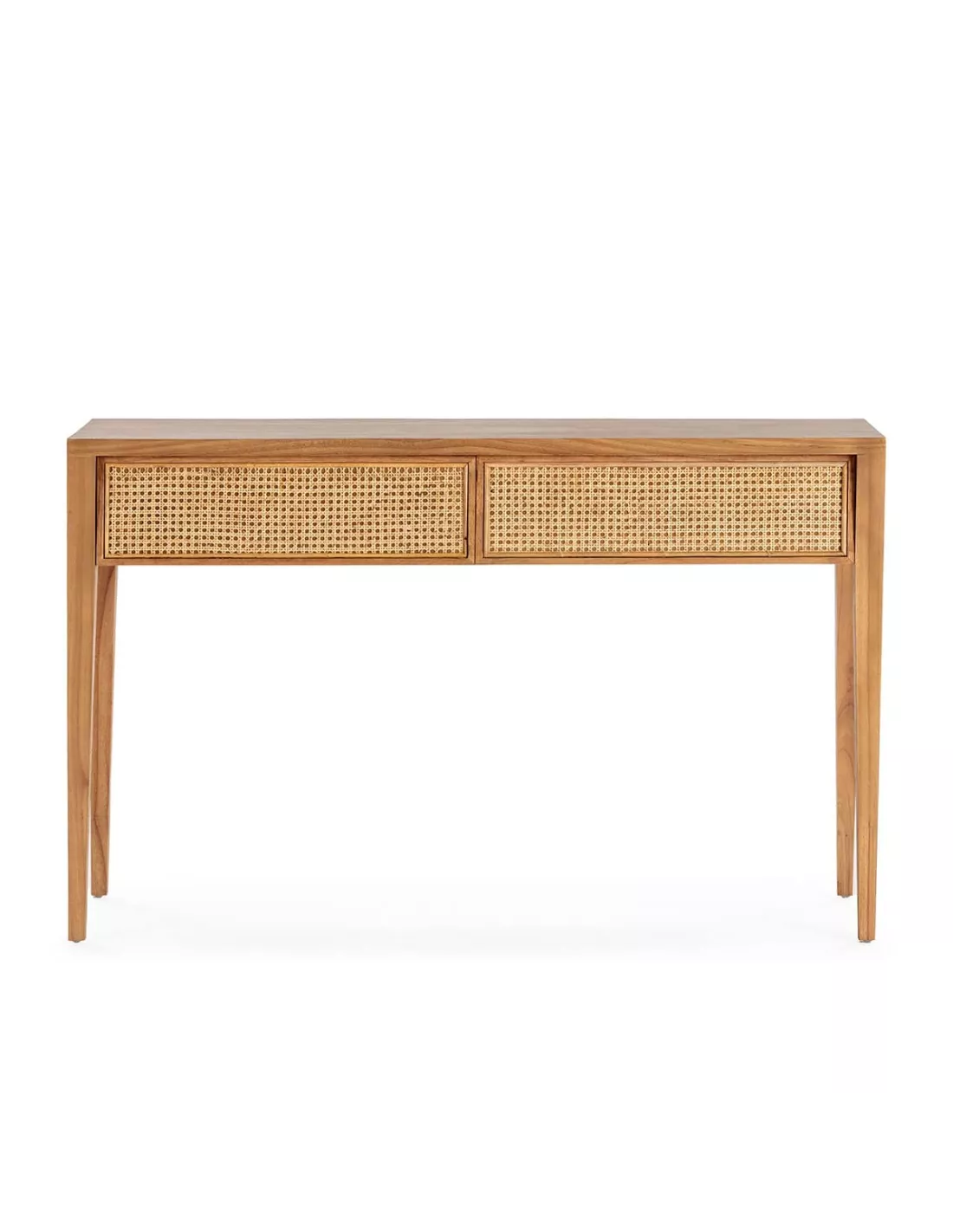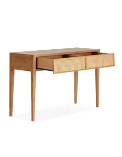 Cette console bois de cèdre naturel et cannage Thai Natura nous séduit par son design et la qualité de sa fabrication. Cette console de 140 cm est réalisée en bois naturel de cèdre et en rotin. Cette console est dotée de grands tiroirs dont la façade est en cannage de rotin pour y ranger des objets et documents. Cette console tendance s’intègrera dans tous les styles de décoration d’intérieur et dans toutes les pièces de la maison. Ne manquez pas de découvrir également le meuble TV assorti disponible sur notre site.