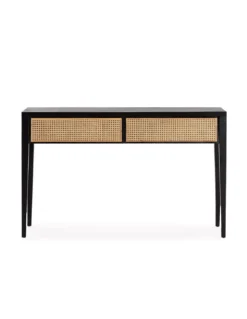 Console noire tendance en bois cèdre et cannage de rotin, Thai Natura