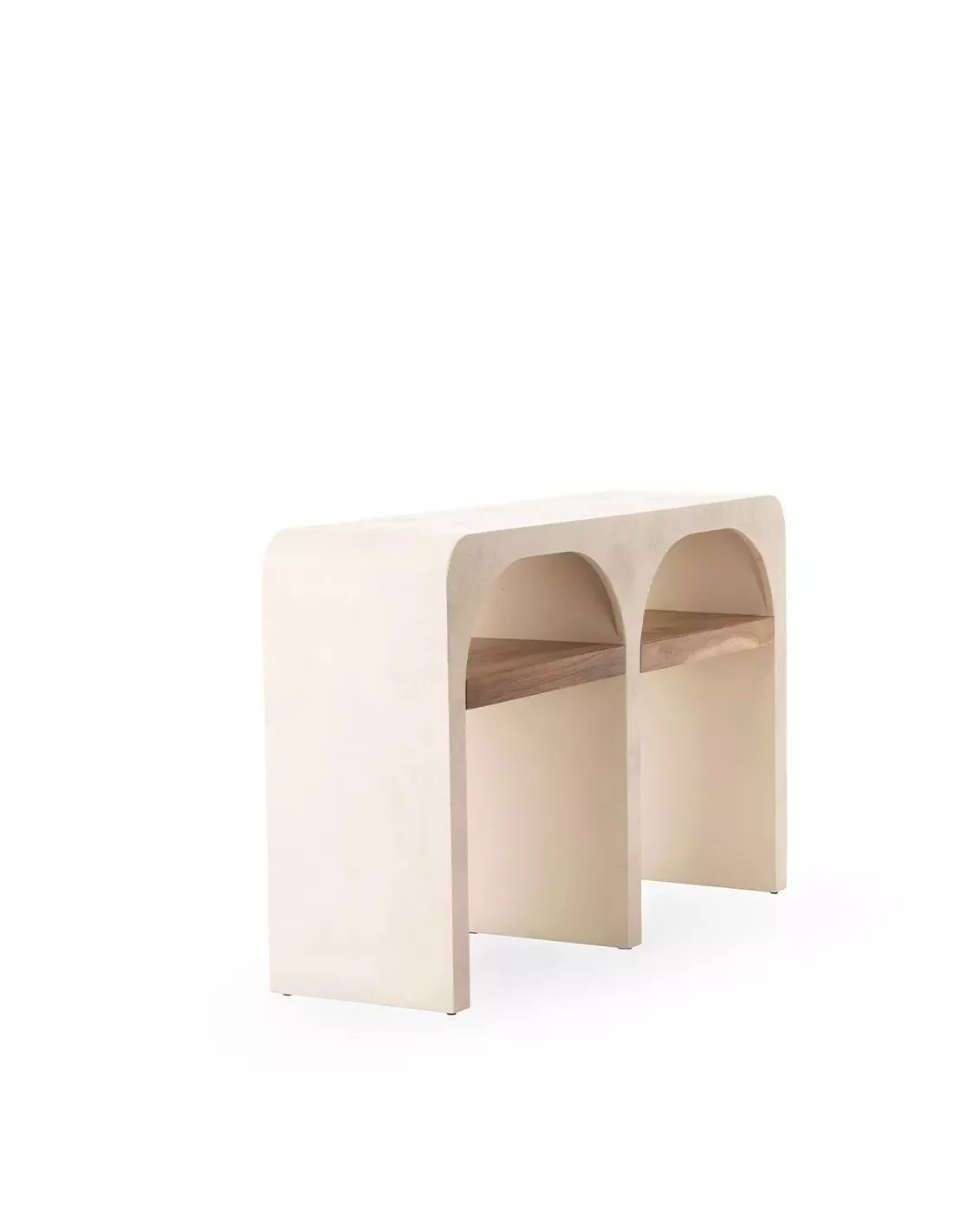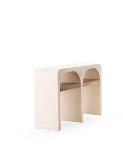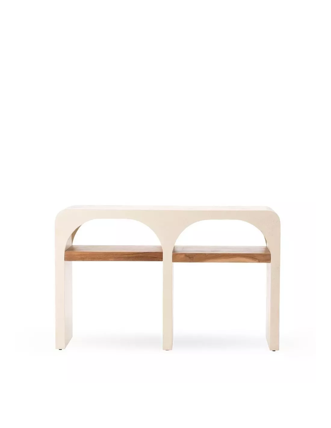 Réalisée en contreplaqué enduit de béton, cette console allie un design épuré et une finition parfaite. Ses deux élégantes arcades sont aménagées d’un plateau en bois d’acacia, offrant ainsi un espace de rangement supplémentaire.