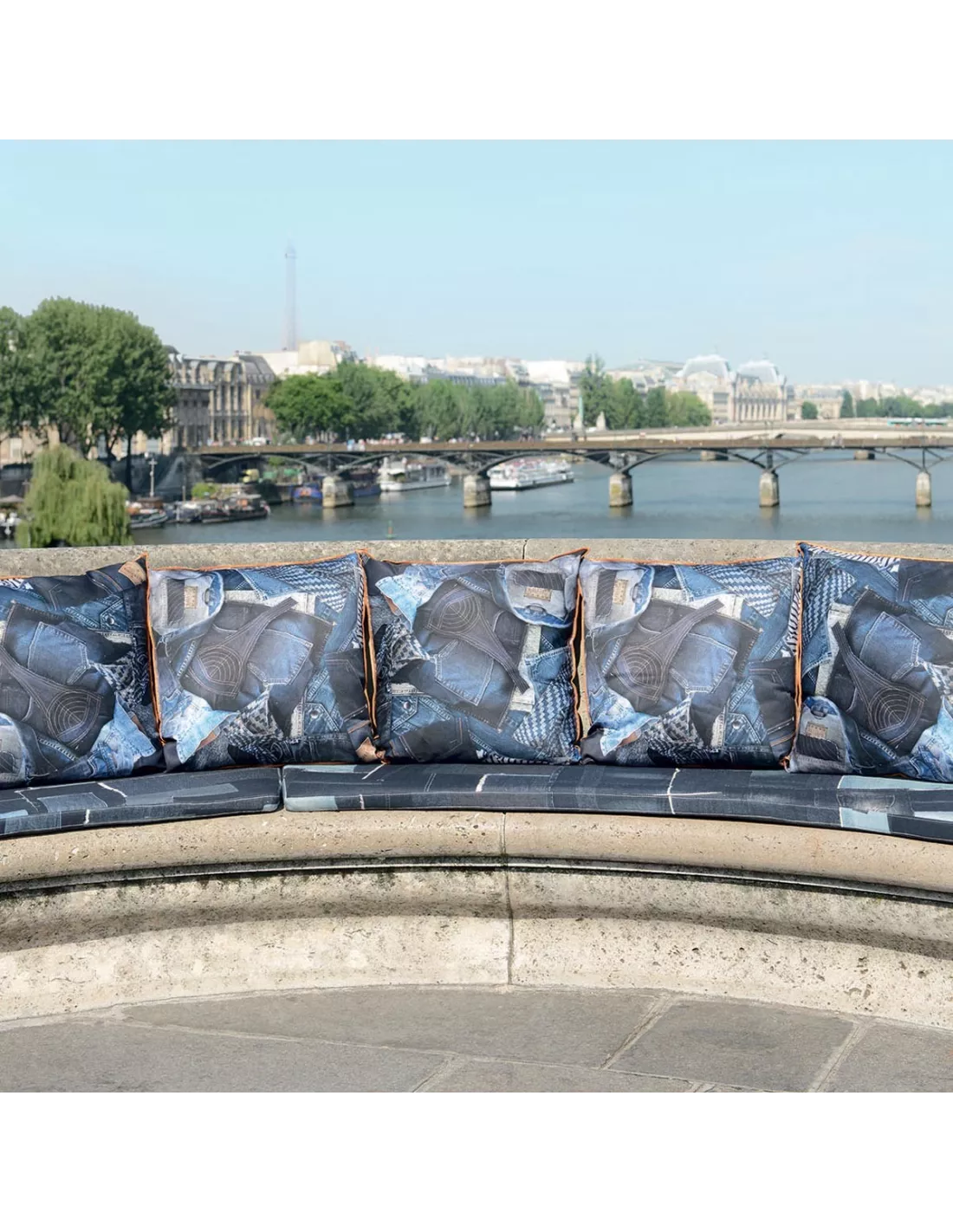 Ce coussin est réalisé avec le tissu On The Road. Il arbore un motif de pièces de jeans avec un réalisme saisissant, et encadré par un fil de couleur. Le coussin America exprime un certain esprit de dynamisme et trouvera sa place dans toutes les pièces de la maison.
