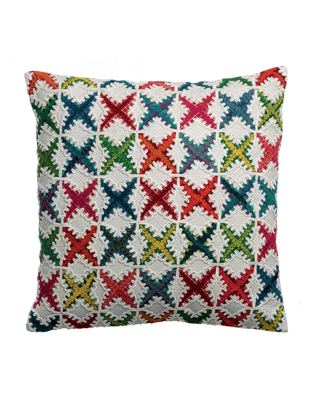 Coussin carré artisanal multicolore brodé esprit seventies, Vivaraise