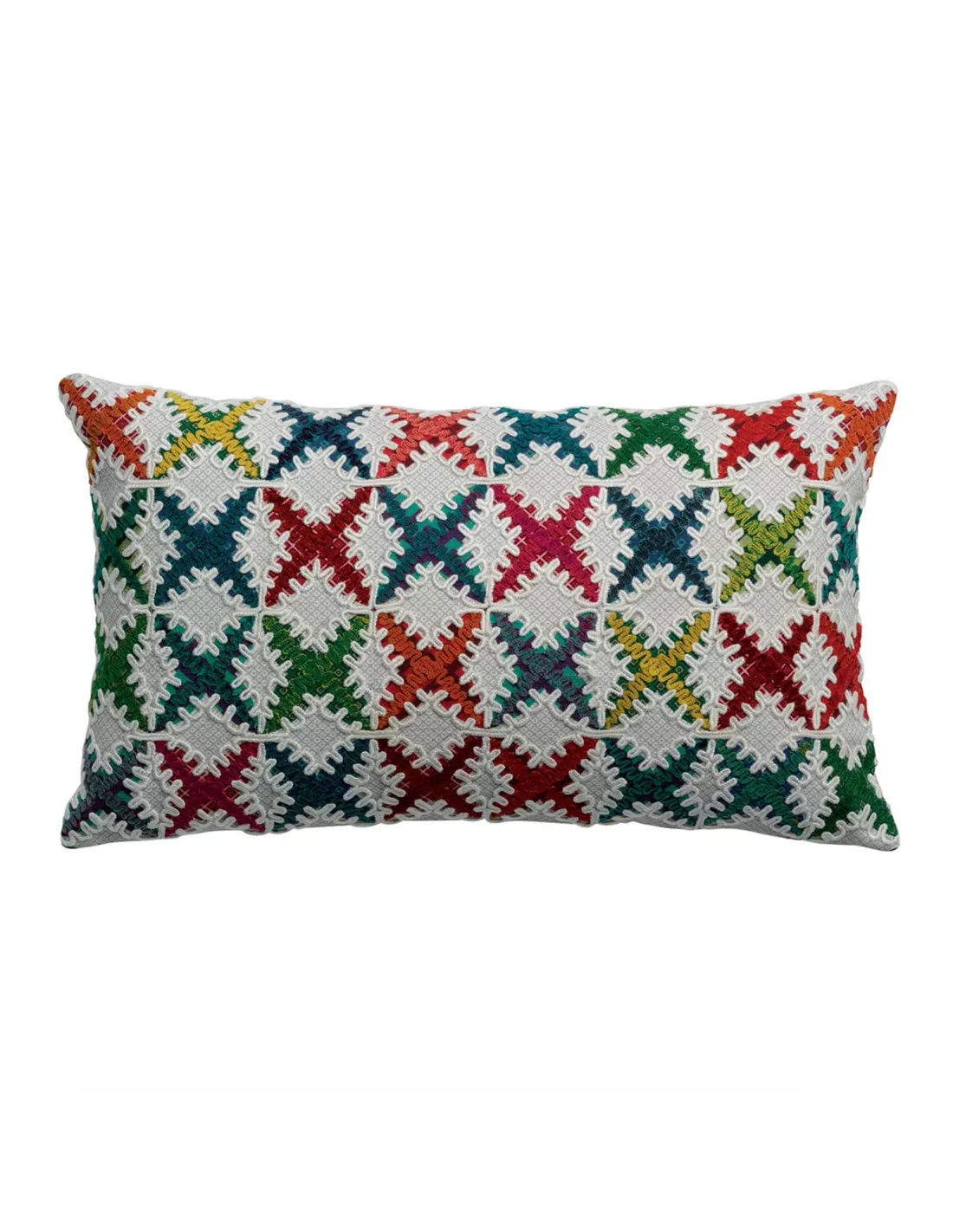Coussin rectangulaire artisanal multicolore brodé esprit seventies, Vivaraise