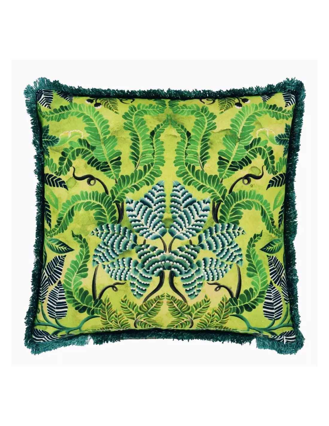 Ce grand coussin floral carré Brocart Decoratif Embroidered Lime apportera une touche colorée à votre intérieur. Somptueusement brodé sur un fond de tilleul, il s’inspire des riches brocarts décoratifs utilisés dans les intérieurs populaires à l’époque du Salone d’Automne 1905 à Paris. Des fleurs et des feuillages finement peints, disposés dans une forme astucieuse de miroir, avec des pétales nuancés et des feuilles rayées qui ajoutent à sa nature décorative. Dans des tons vifs, cet élégant coussin brodé Designers Guild est associé à un motif de feuilles imprimé numériquement au verso et terminé par une luxueuse bordure frangée en bleu sarcelle sur tous les côtés.