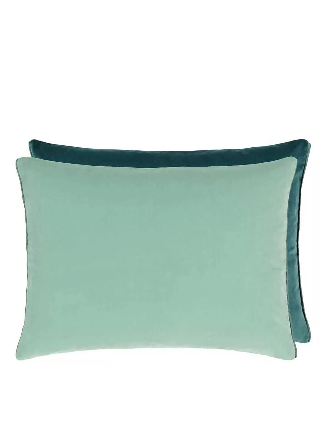 Coussin rectangulaire design en velours uni vert celadon et verso vert foncé, Designers Guild