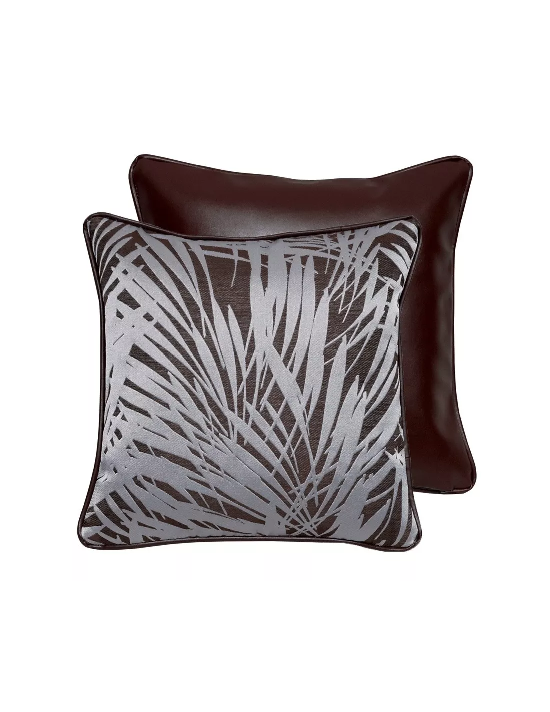 Le coussin carré Drive est réalisé à partir du motif de palmes du tissu Cuba et le dos en faux cuir assorti au passepoil.