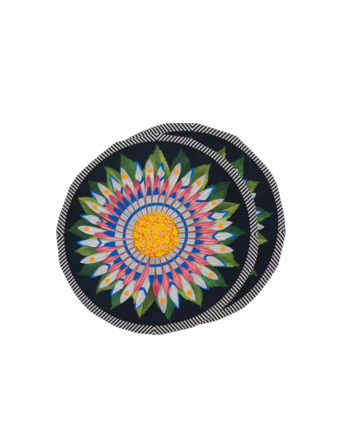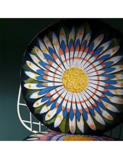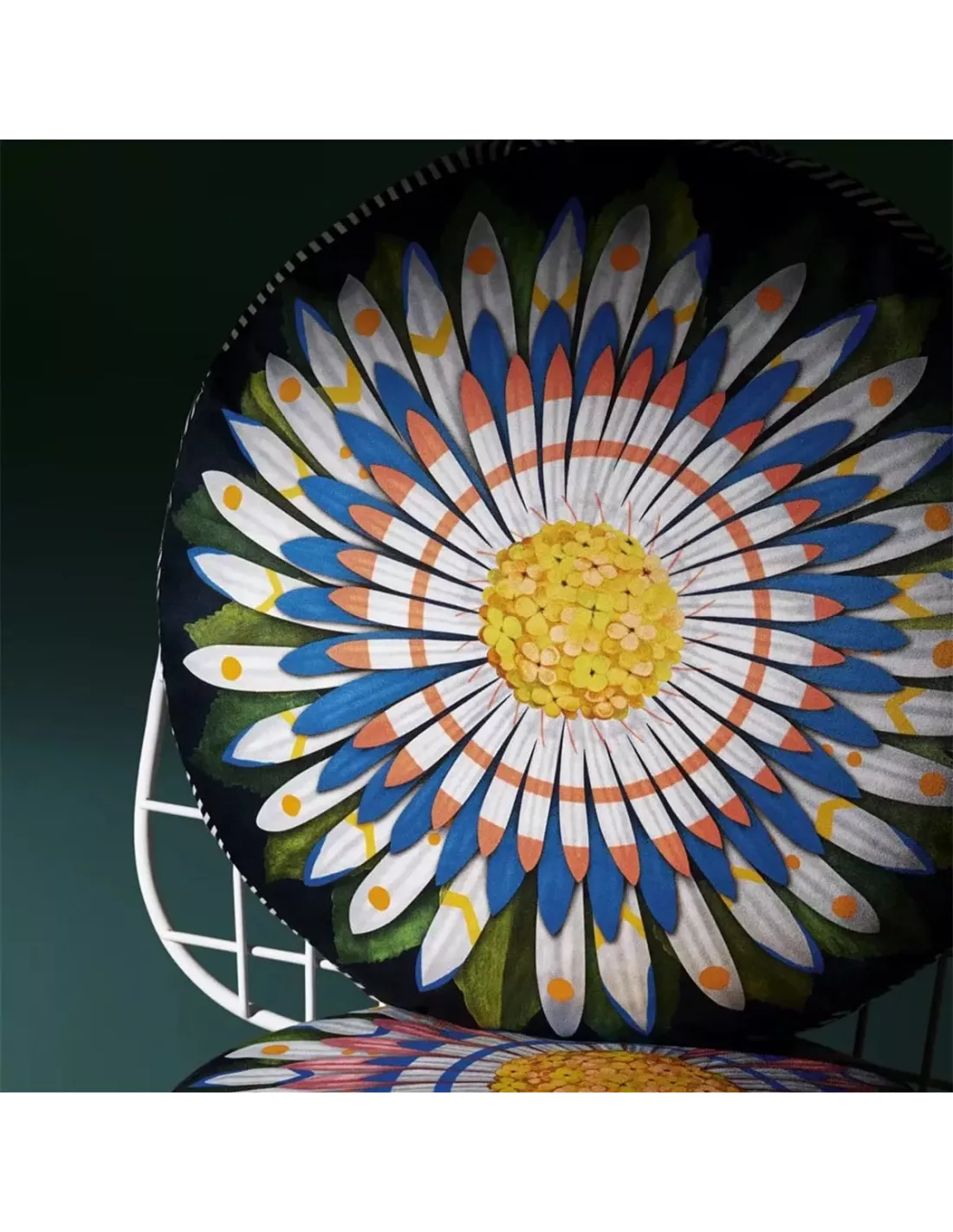 Rond et généreusement dimensionné, ce coussin de créateur devient le point focal idéal pour apporter une note de fraîcheur et de vie à votre décor. Chaque exemplaire étant unique, il offrira une touche d’originalité distinctive à votre espace.