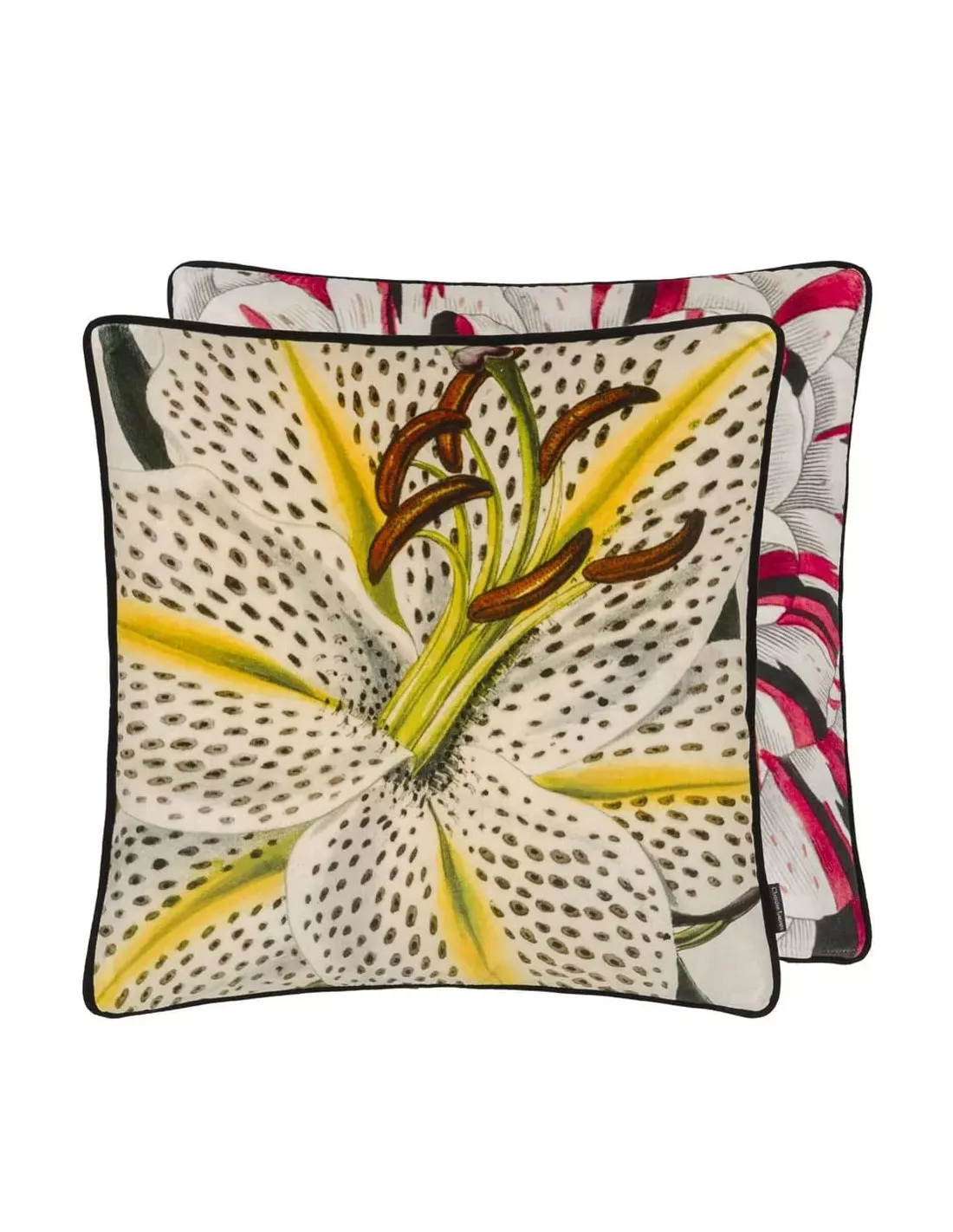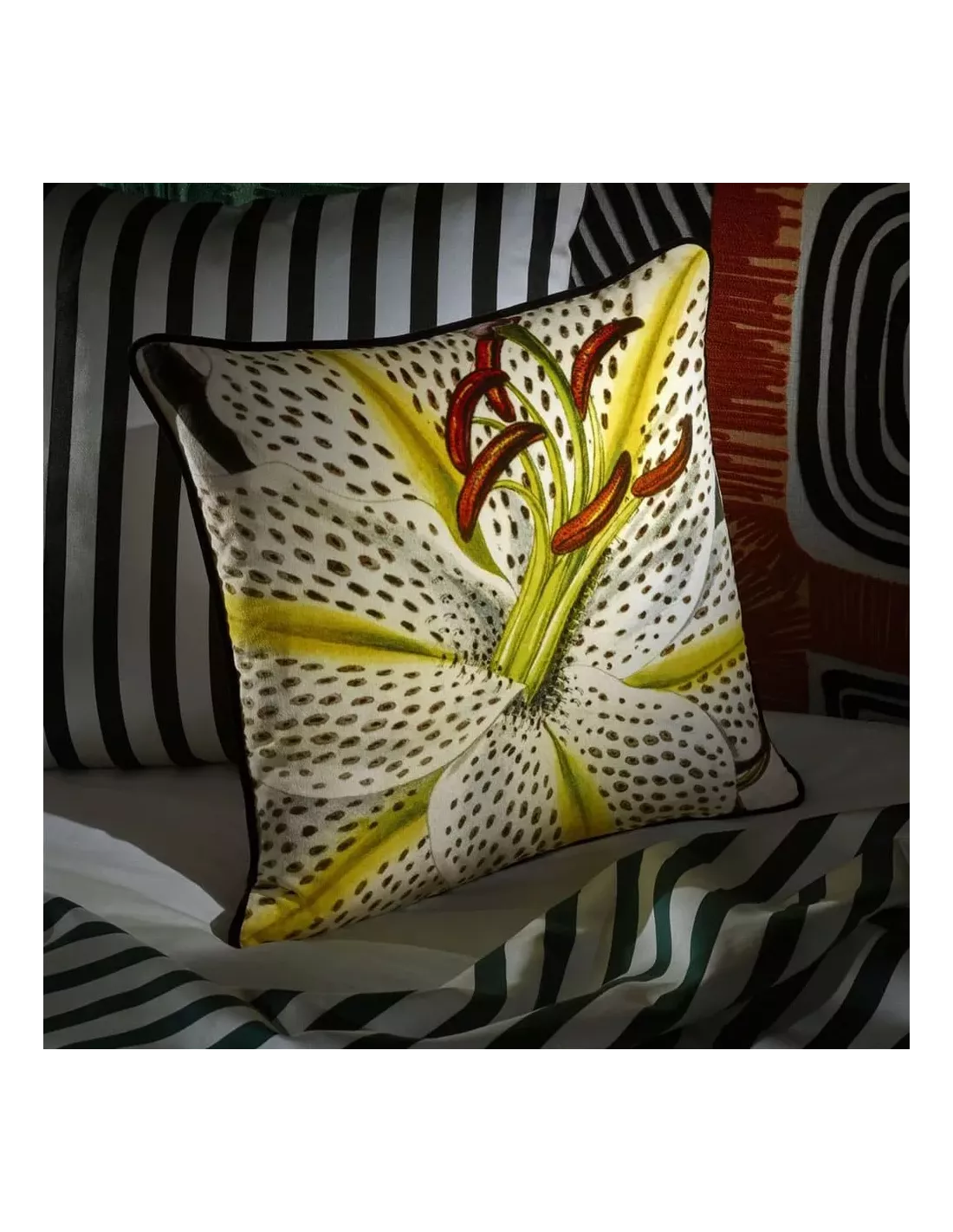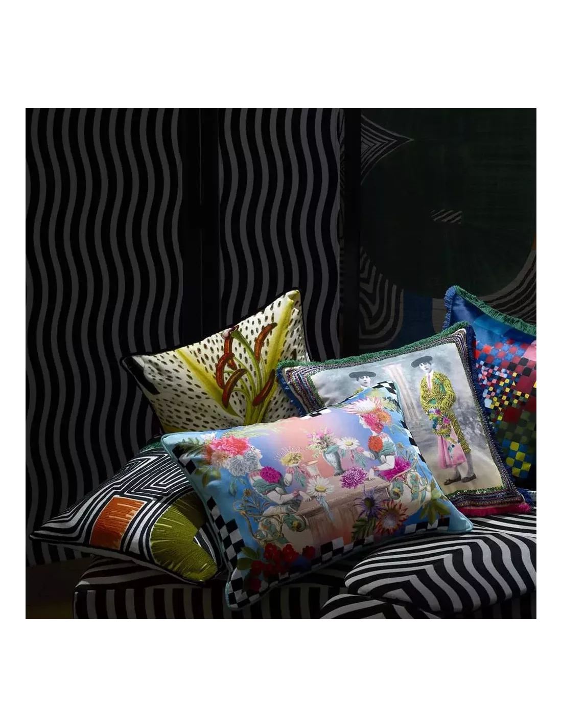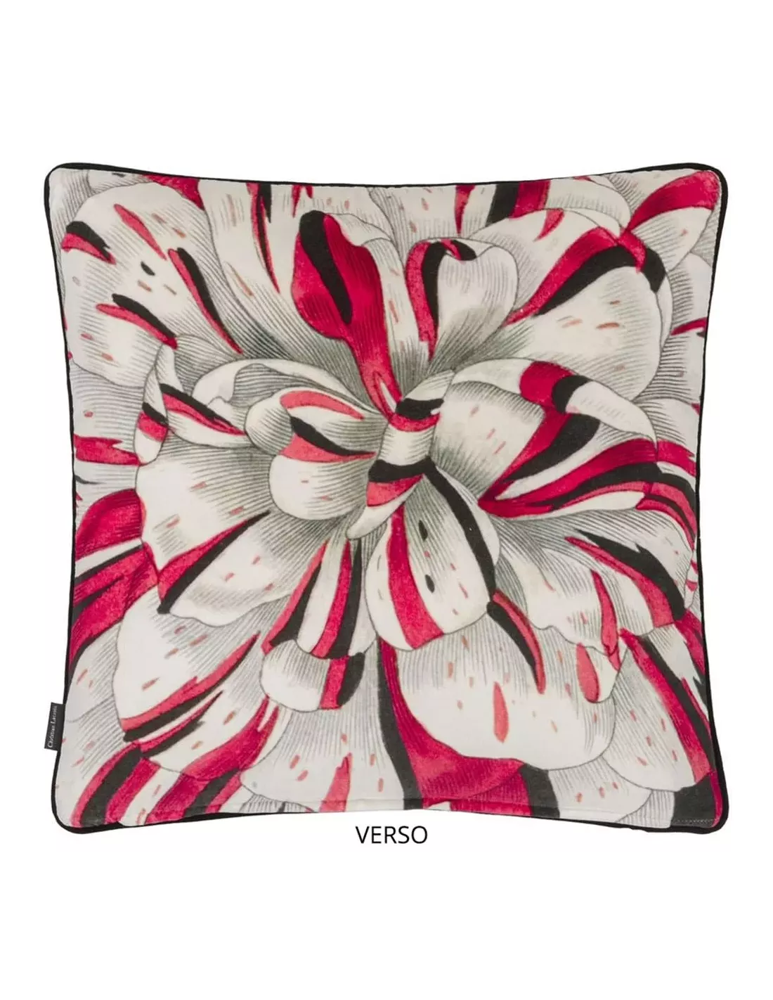 Ce magnifique coussin Flowered signature de la Maison Christian Lacroix met en scène une fleur botanique, captée dans un gros plan saisissant. L’impression numérique sur le velours épais et moelleux confère à ce motif une qualité tactile exceptionnelle. Les contours de la fleur sont délicatement soulignés par un passepoil en velours noir, apportant une touche de raffinement ultime. Ce coussin d’exception, véritable pièce maîtresse pour votre décoration, saura captiver l’attention et insuffler une note d’élégance botanique dans votre intérieur. Son format généreux en fait un élément central pour sublimer votre canapé ou votre lit.