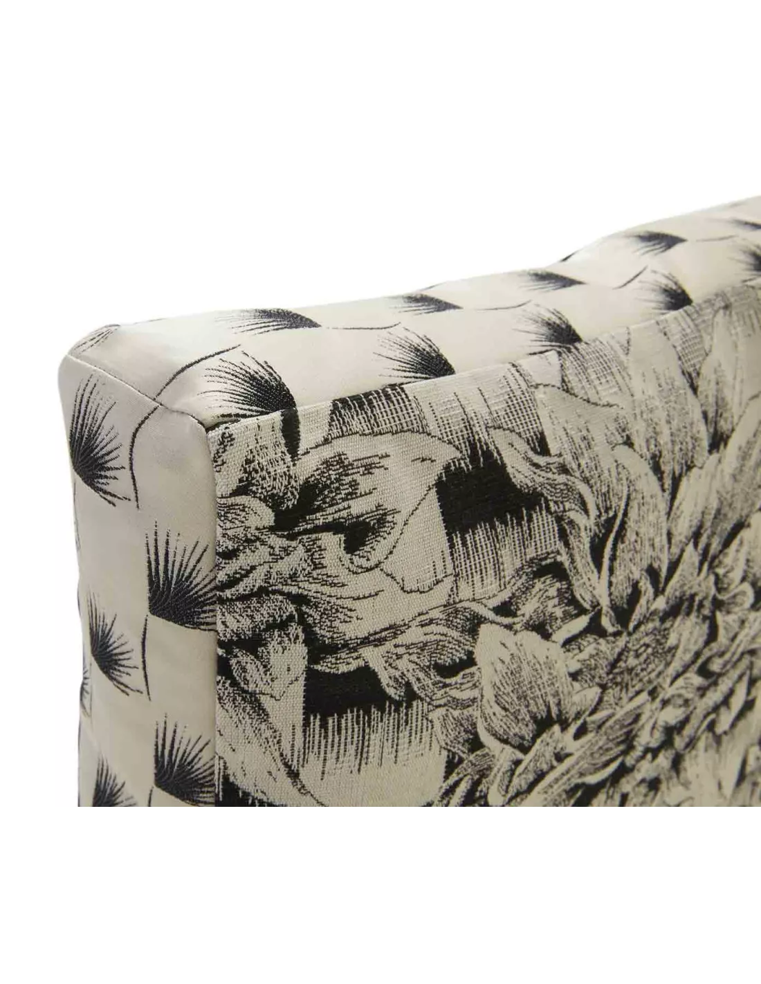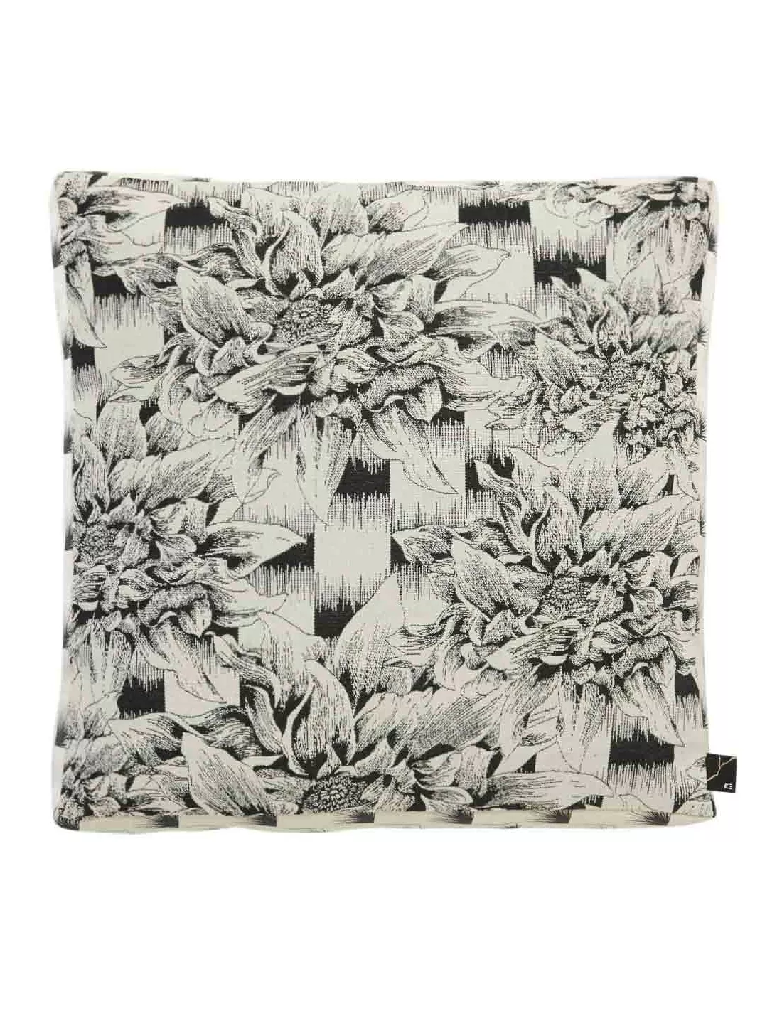 Coussin carré en tissu jacquard fleuri ton sur ton au verso noir, K3 design by Kenzo Takada