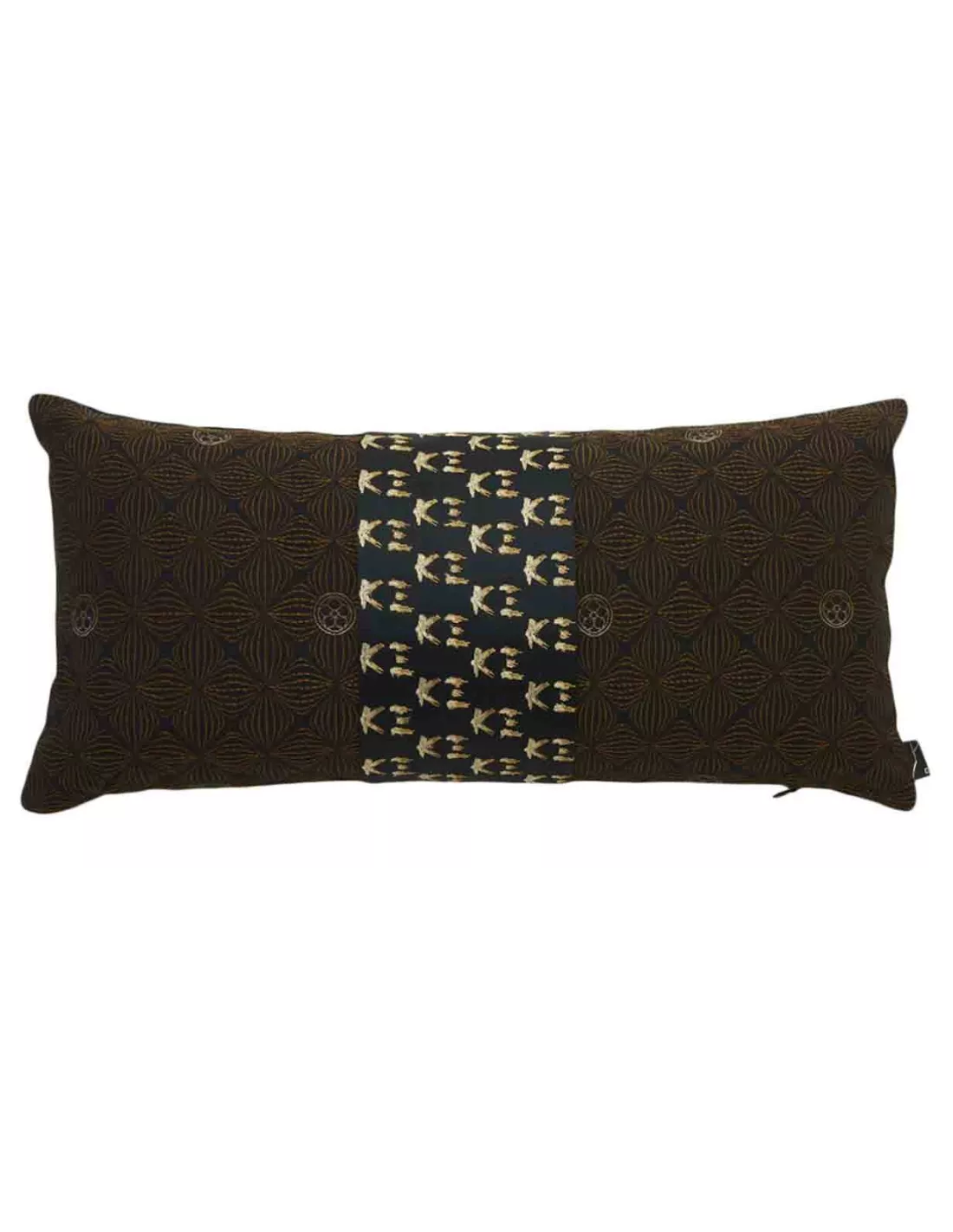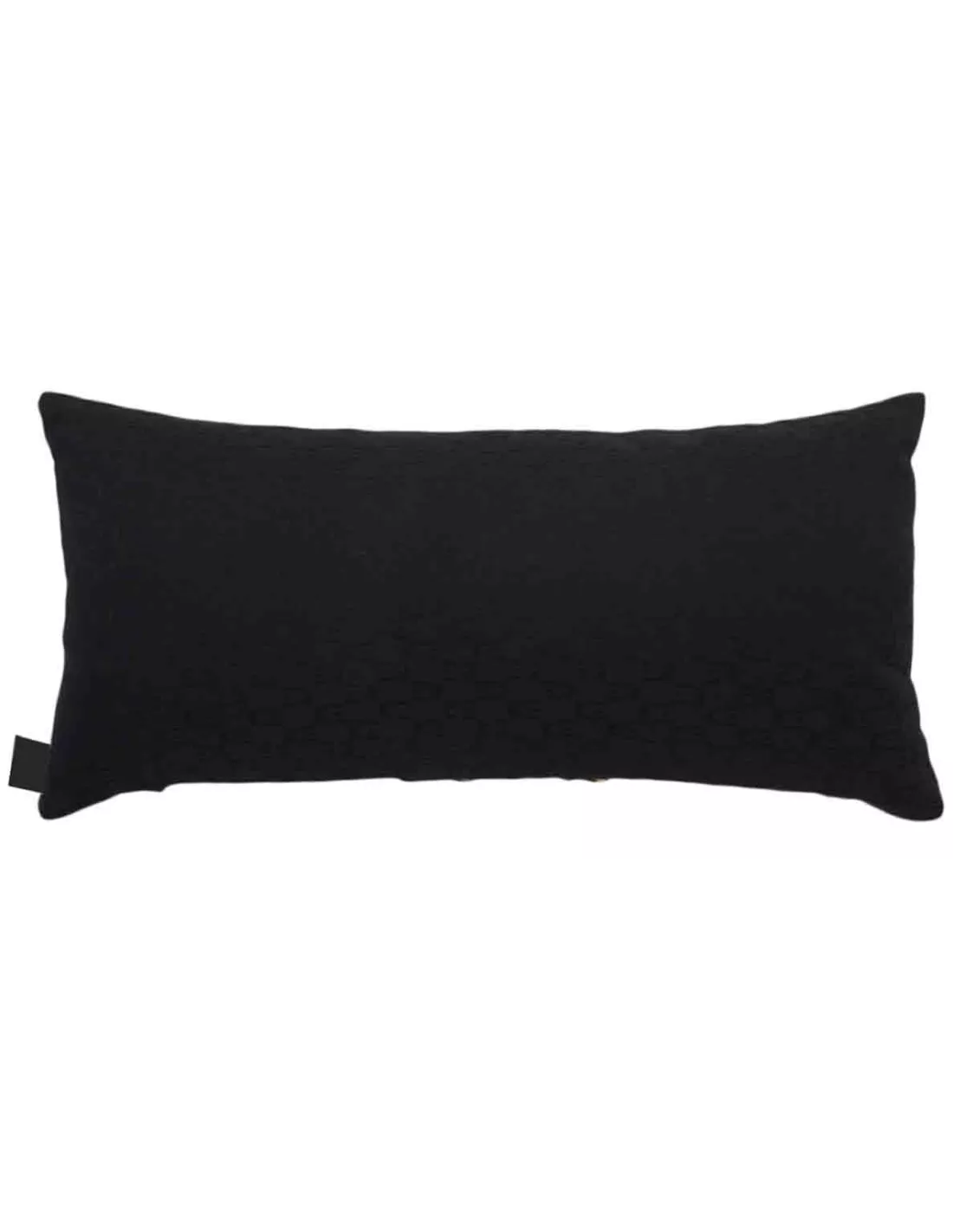 Coussin rectangulaire noir arborant les initiales de Kenzo sur un fond uni, K3 design by Kenzo Takada