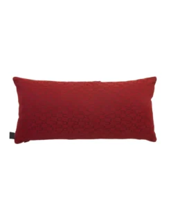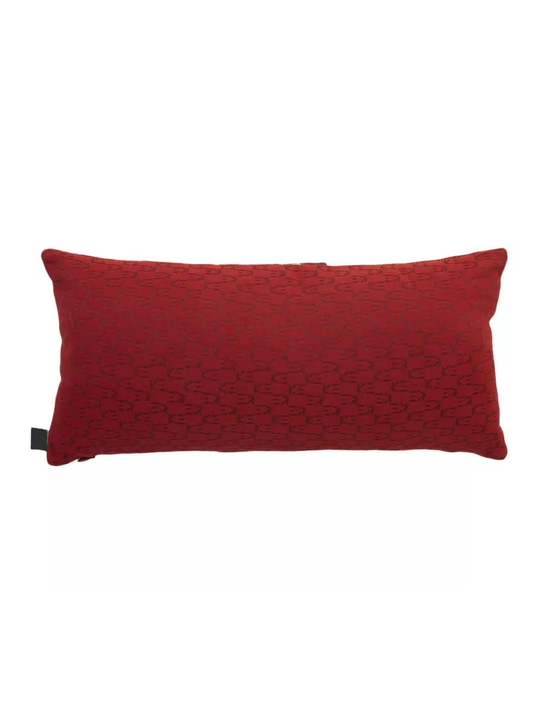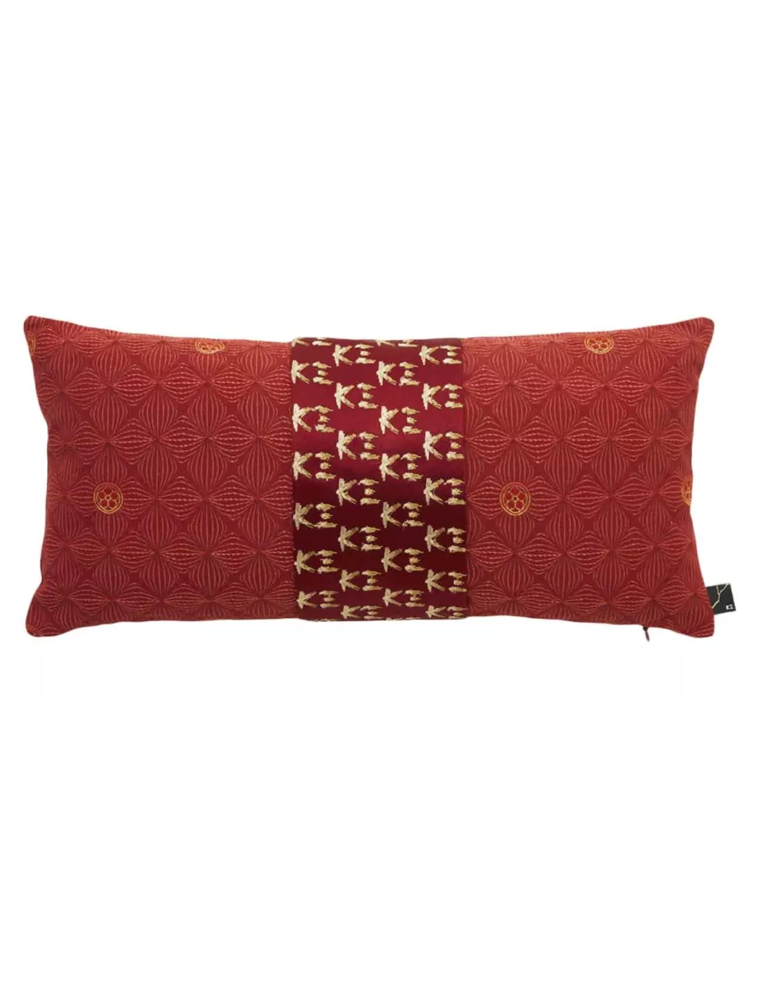 Coussin rectangulaire rouge arborant les initiales de Kenzo sur un fond uni, K3 design by Kenzo Takada