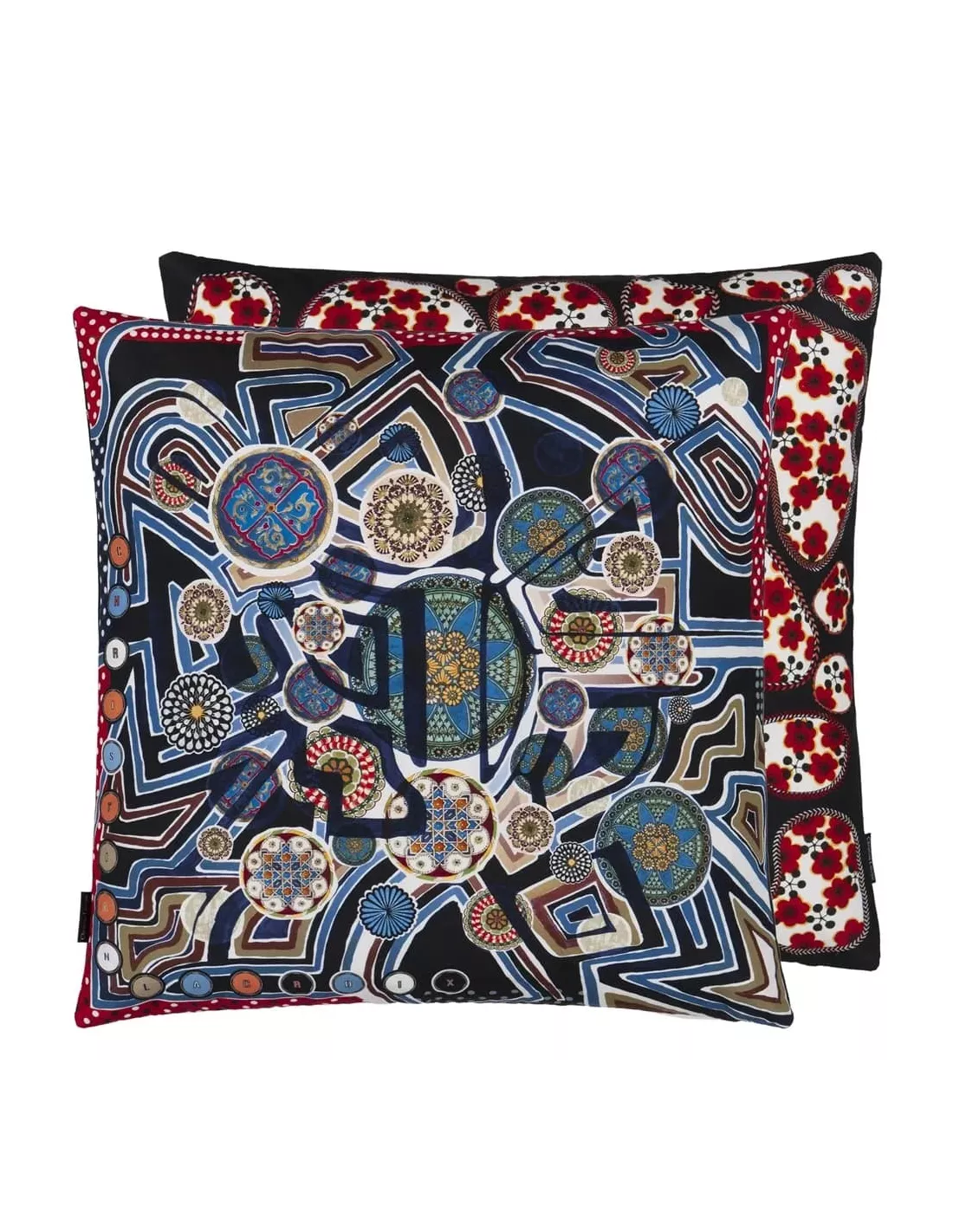 Coussin carré noir bleu et rouge, Christian Lacroix