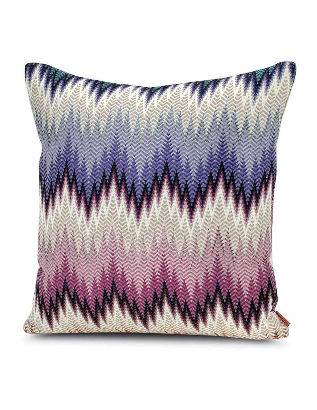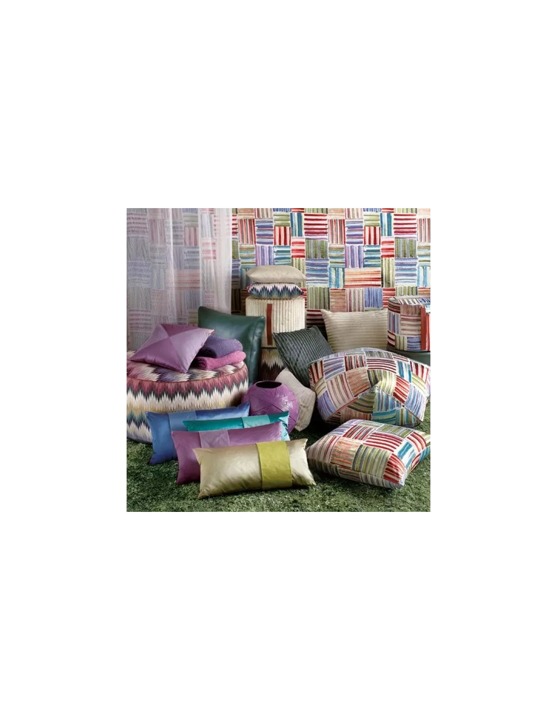 Coussin Phrae carré Missoni Home. Nous aimons ce coussin Phrae qui nous propose une variation autour du chevron. Son dégradé profonds de couleurs en fait un coussin raffiné. Pouf coordonné sur le site.