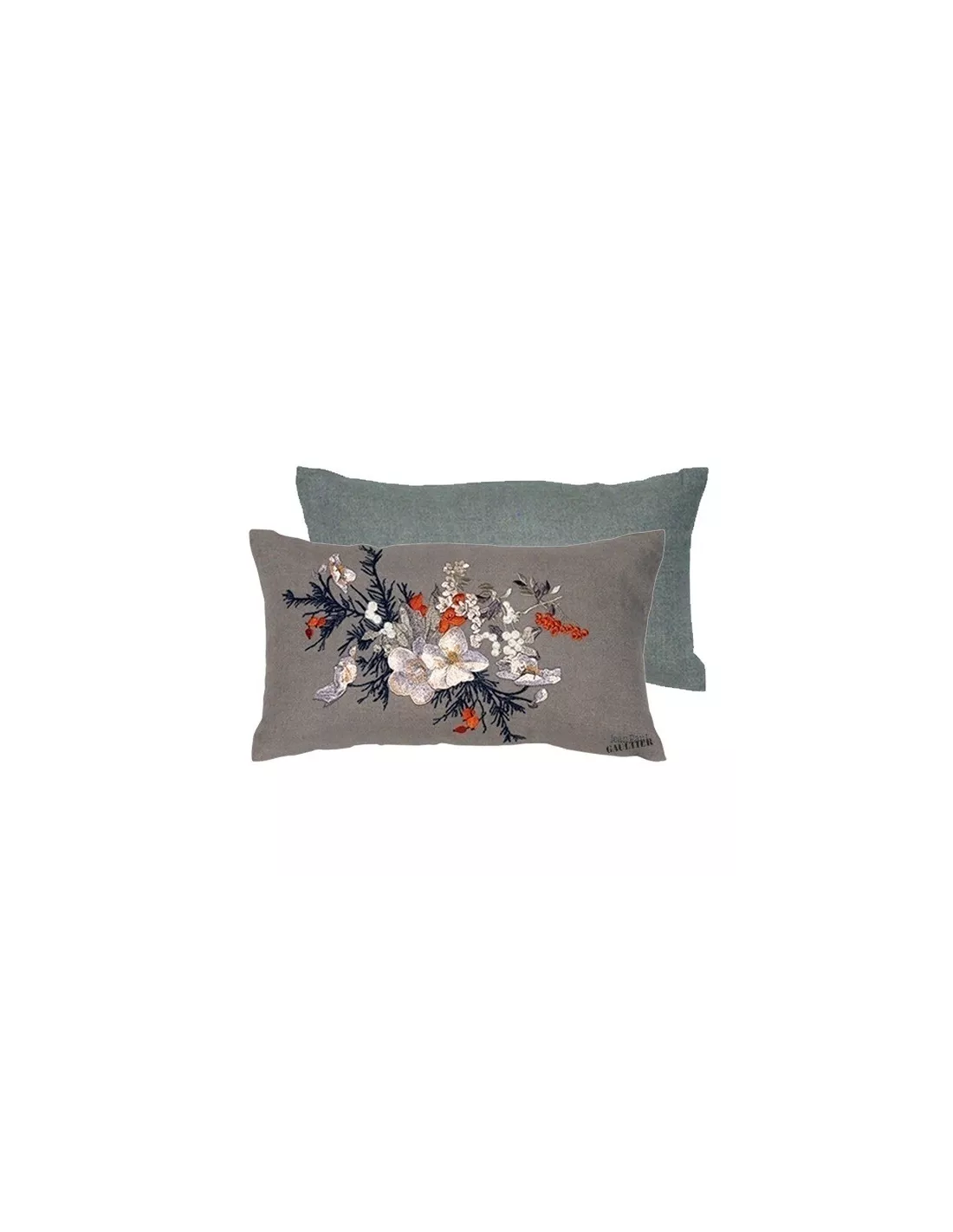 Coussin rectangulaire Poésie Terre Jean Paul Gaultier Maison, dont le dos est uni. Coussin composé de broderies très romantiques… Ce coussin, issu de la collection Paysage, est coordonné aux coussins Délice et Emotif, signature Jean Paul Gaultier.