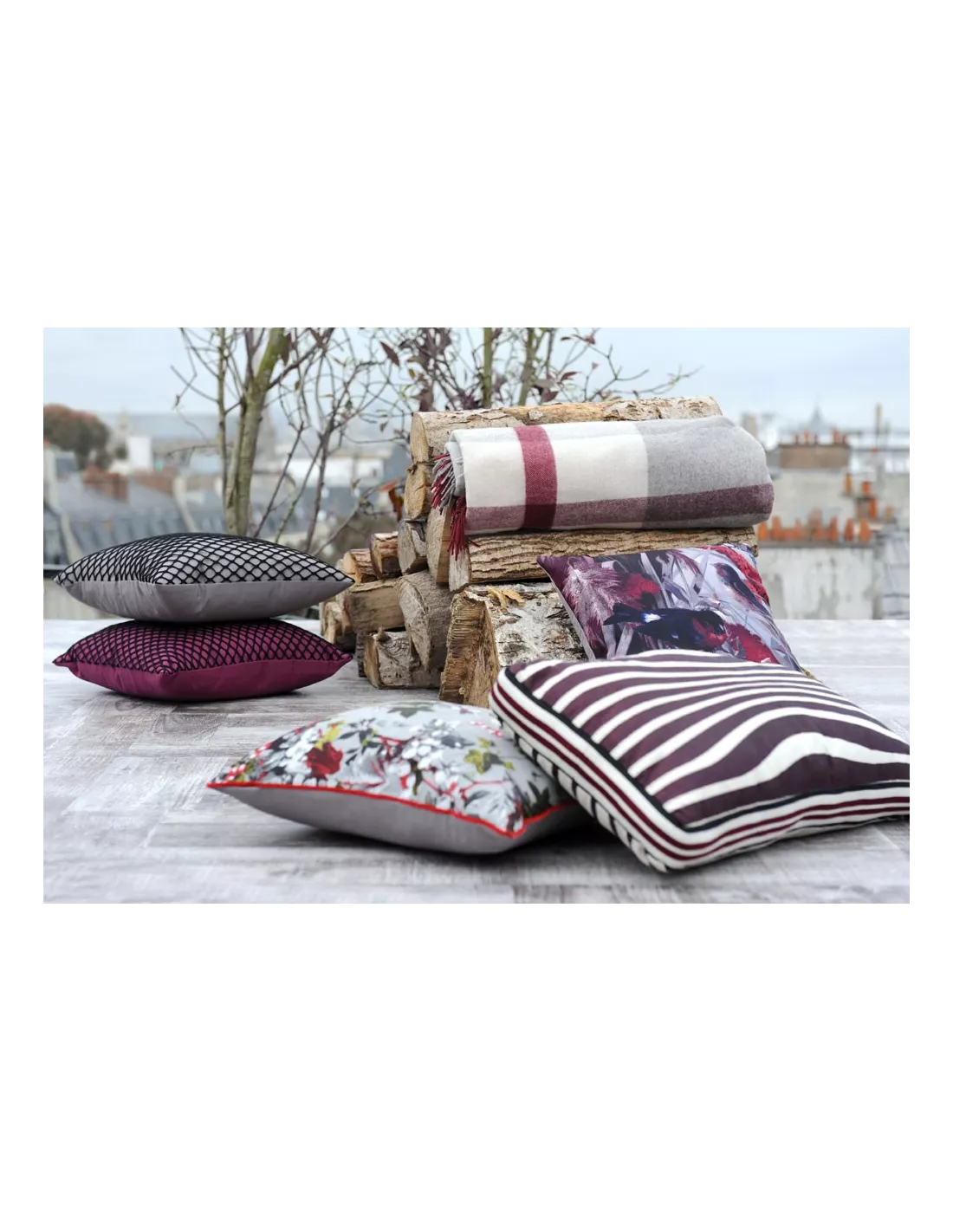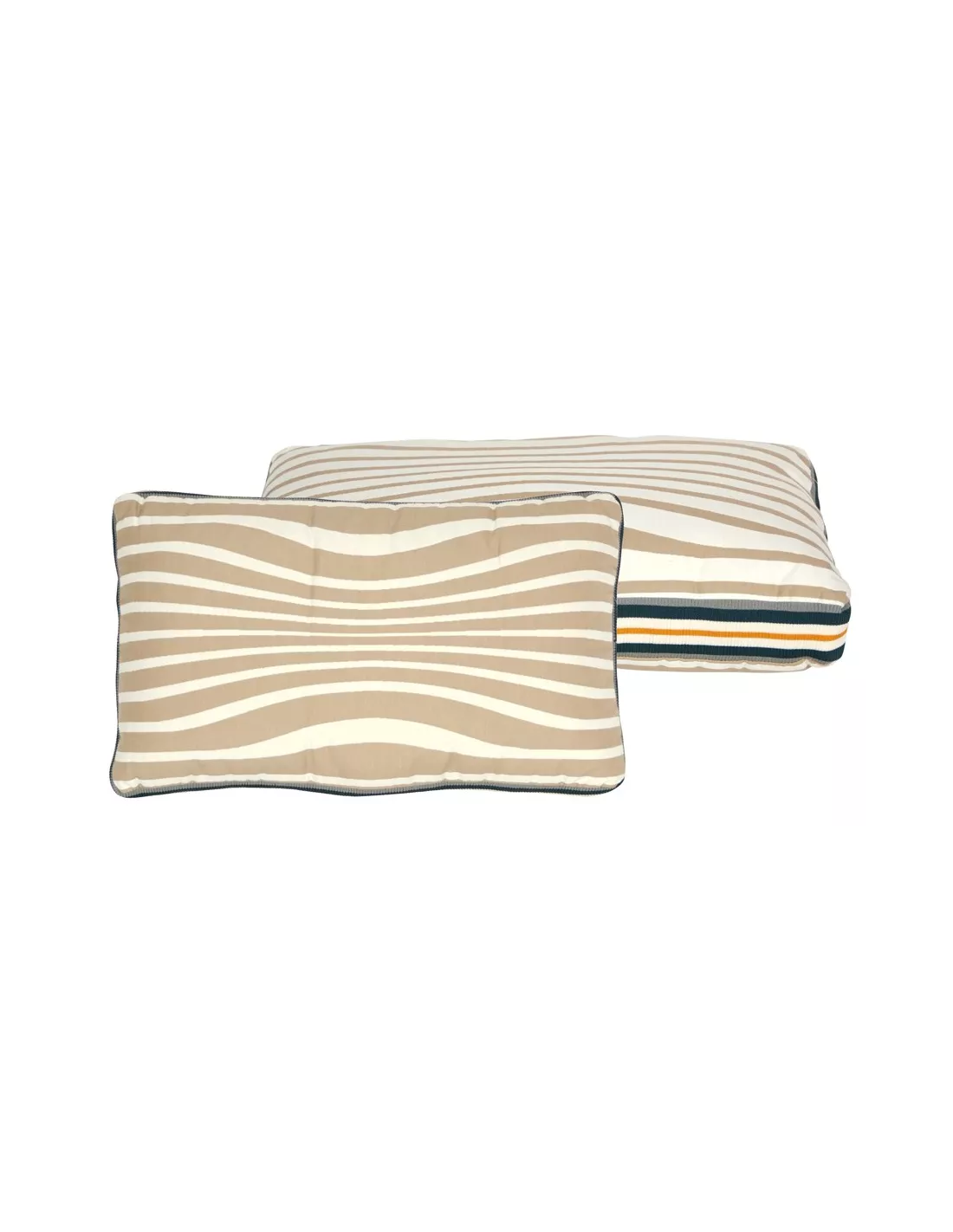 Coussin rectangulaire Reversible beige by Jean Paul Gaultier Maison. Ce coussin réversible à bandes rayées, aux lignes légèrement ondulées, joue sur un très bel effet en trompe l’oeil.