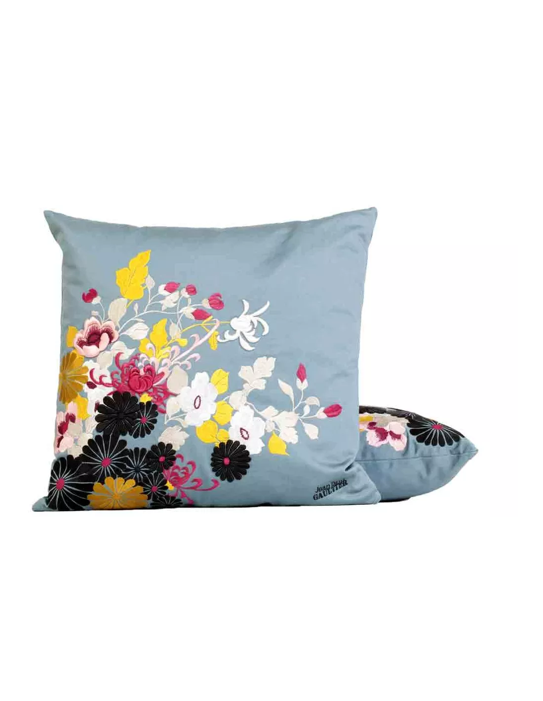 Coussin design carré bleu à fleurs, Jean Paul Gaultier