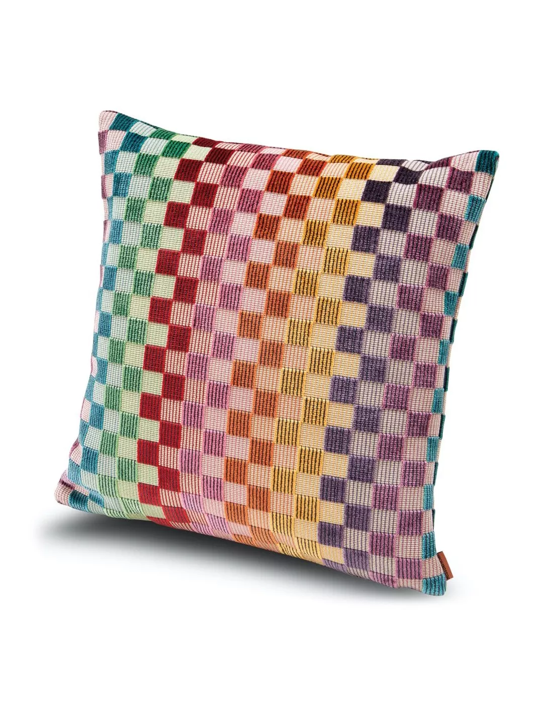 Coussin carré en tissu velours à petits carreaux multicolores, Missoni Home