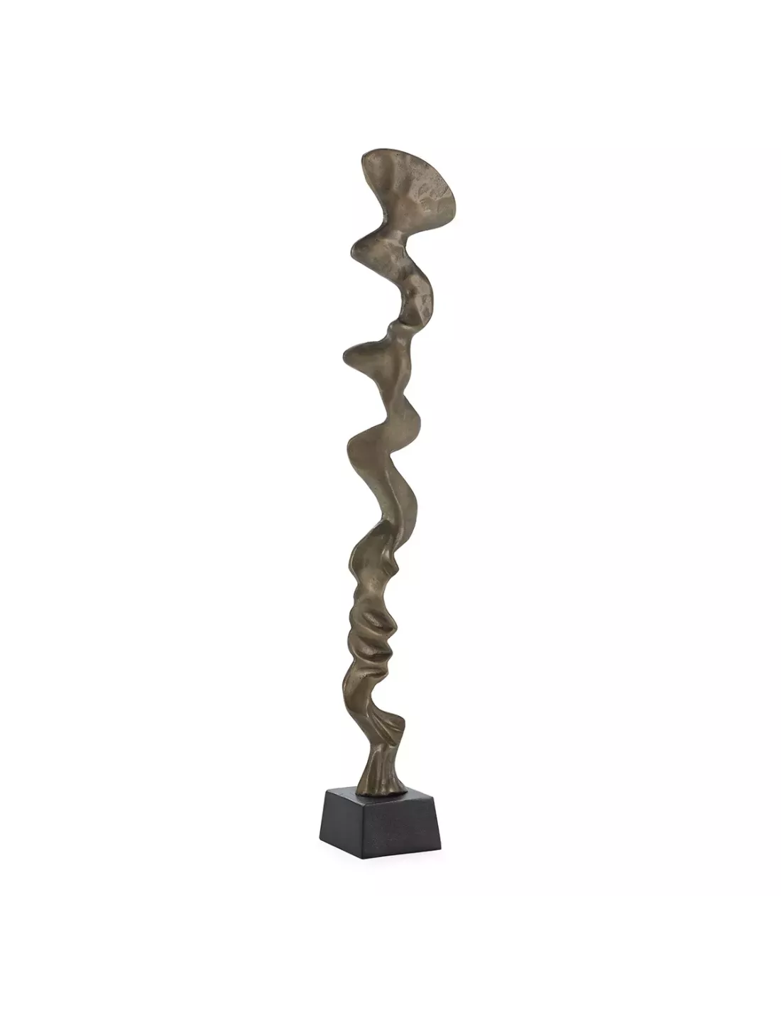 Réalisée en aluminium bronze doré et en marbre pour le socle, cette sculpture allie avec brio des matériaux nobles et contrastés. Cette sculpture design élégante pourra trouver sa place sur une console, une table basse ou encore sur une étagère, pour devenir le point focal de votre décoration.