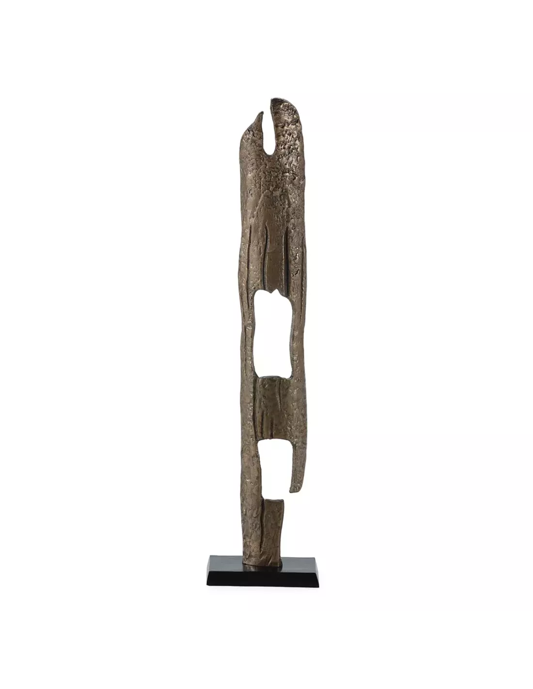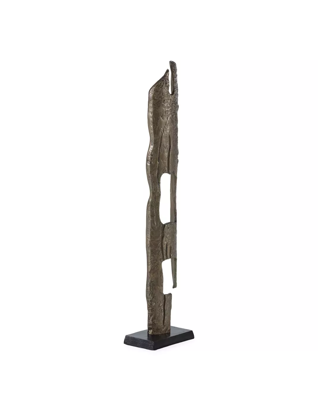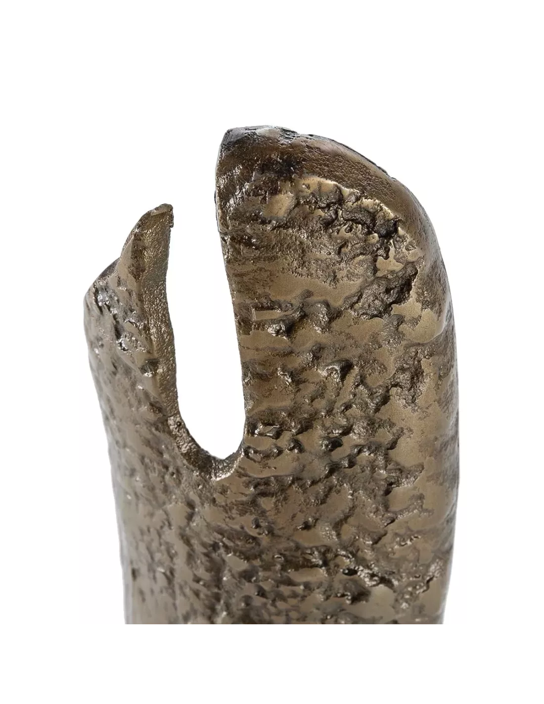 Réalisée en aluminium doré vieilli et de marbre pour le socle, cette sculpture allie avec brio des matériaux nobles et contrastés. Cette sculpture design élégante pourra trouver sa place sur une console, une table basse ou encore sur une étagère, pour devenir le point focal de votre décoration.