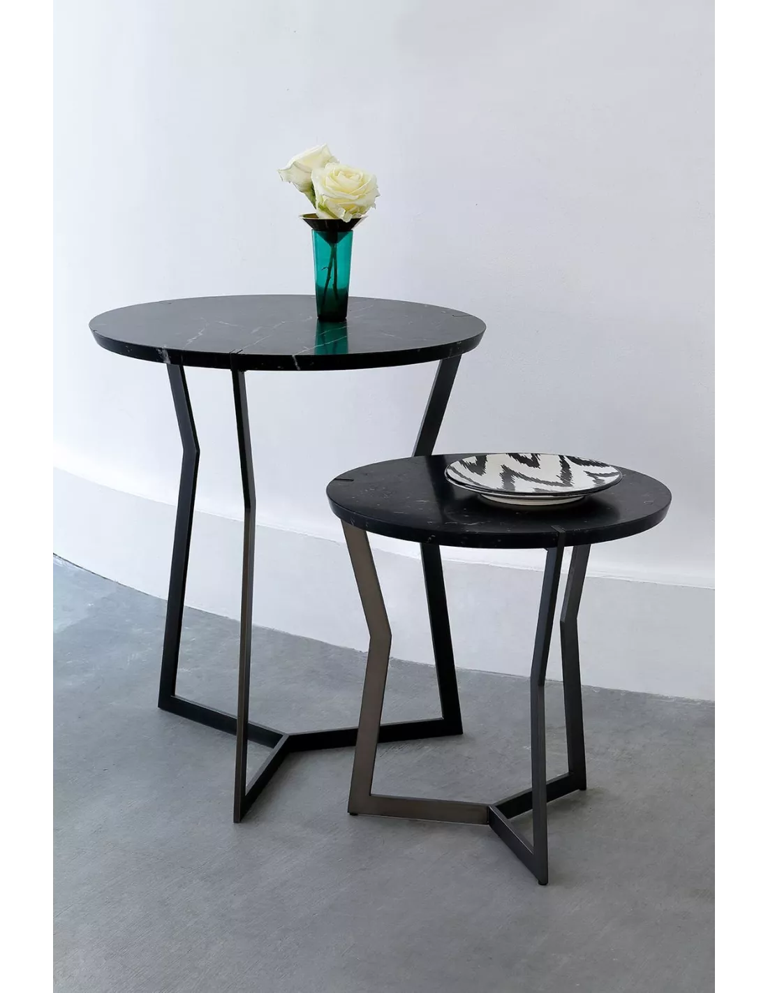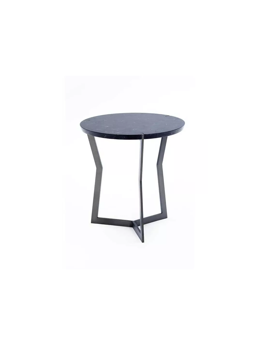 Guéridon design marbre noir Marquina et pieds bronze noirs 40×40, Coédition