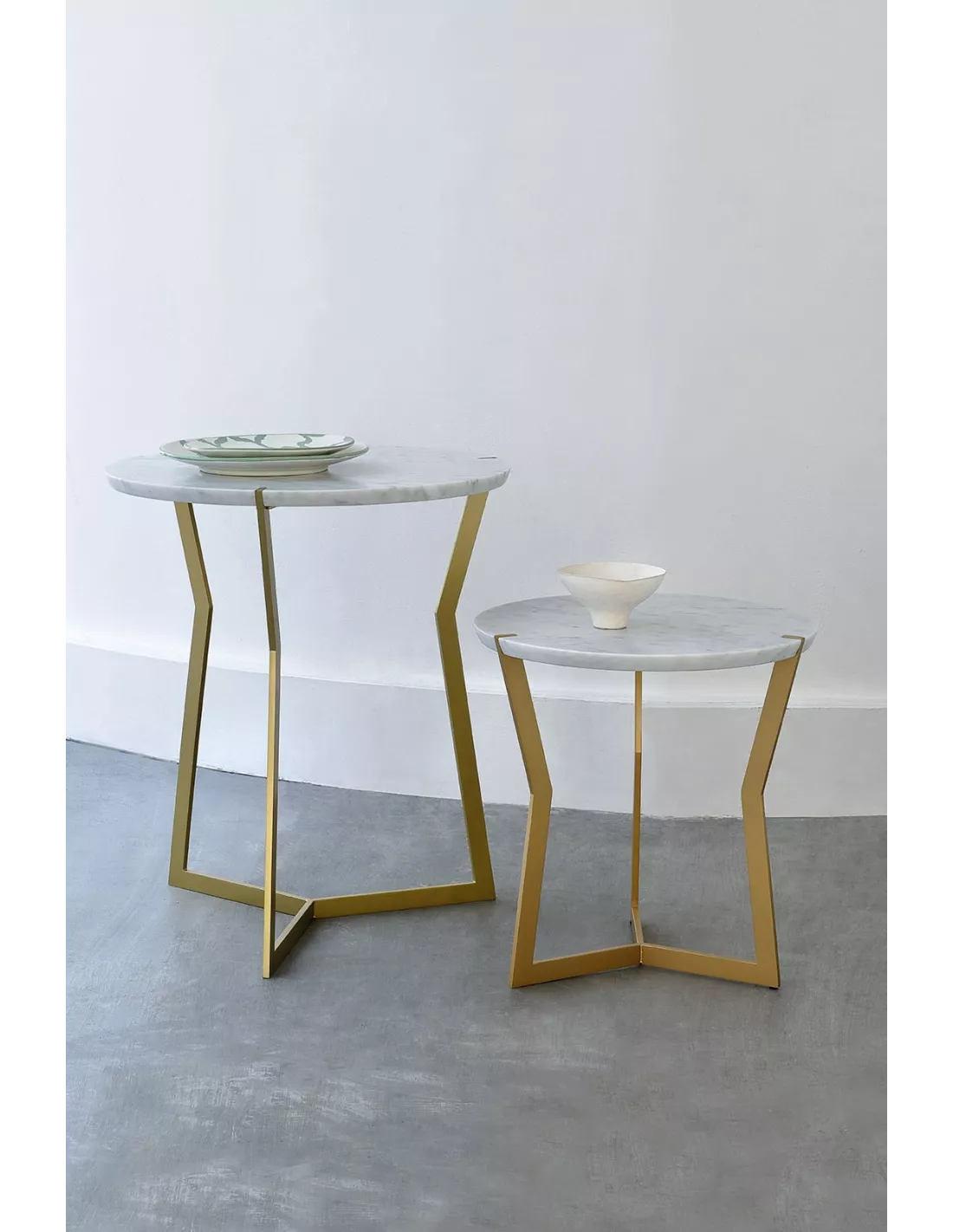 Guéridon design marbre de Carrare et pieds or Ø50, Coédition