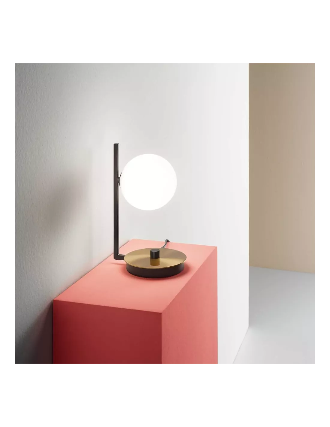 Lampe design ronde blanche avec structure en métal noir mat et laiton satiné, Ideal Lux