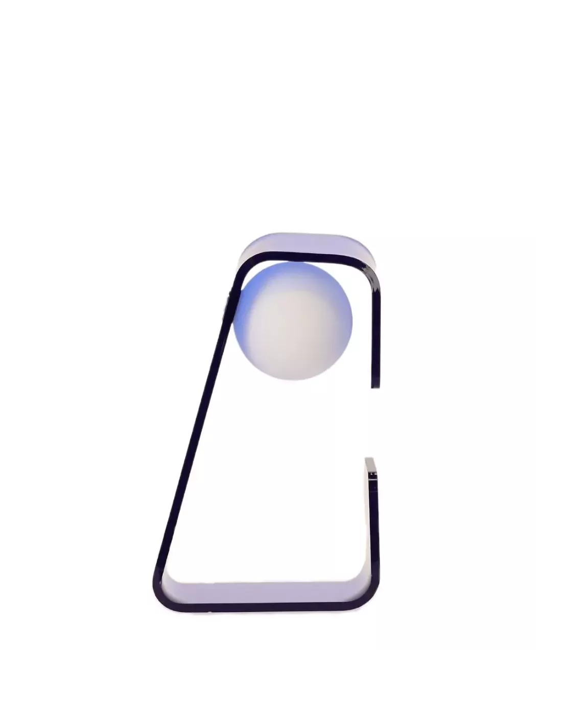 Au cœur de cette sphère se cache une douille G9 pouvant accueillir une ampoule jusqu’à 60W, diffusant une lumière chaleureuse et enveloppante. Ce jeu de formes géométriques simples et de matériaux contrastés crée un effet de style singulier, à la fois classique et résolument contemporain.