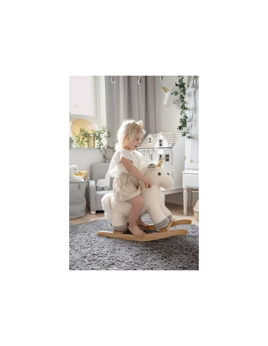 Licorne à bascule en bois et revêtement 100% polyester, JaBaDaBaDo