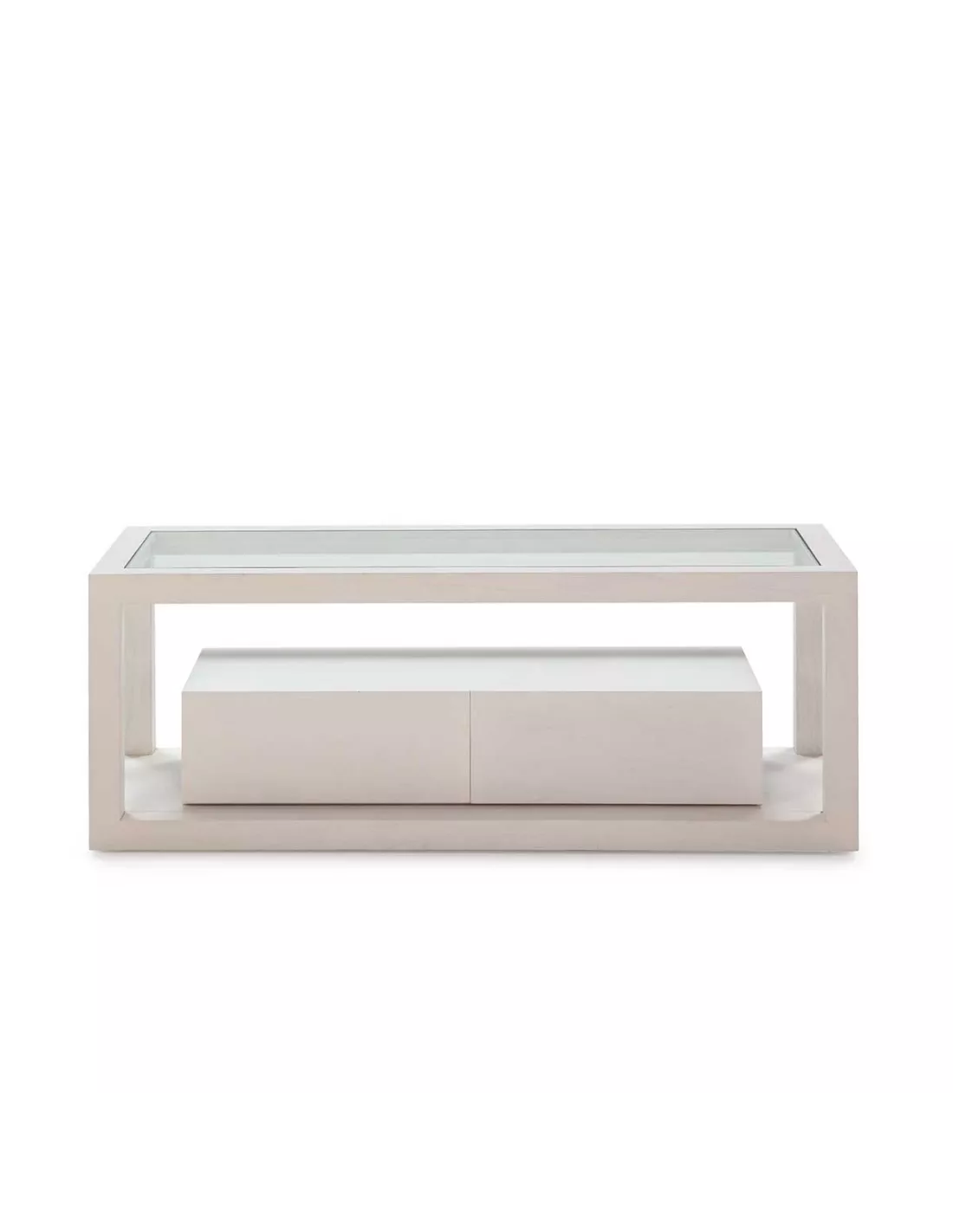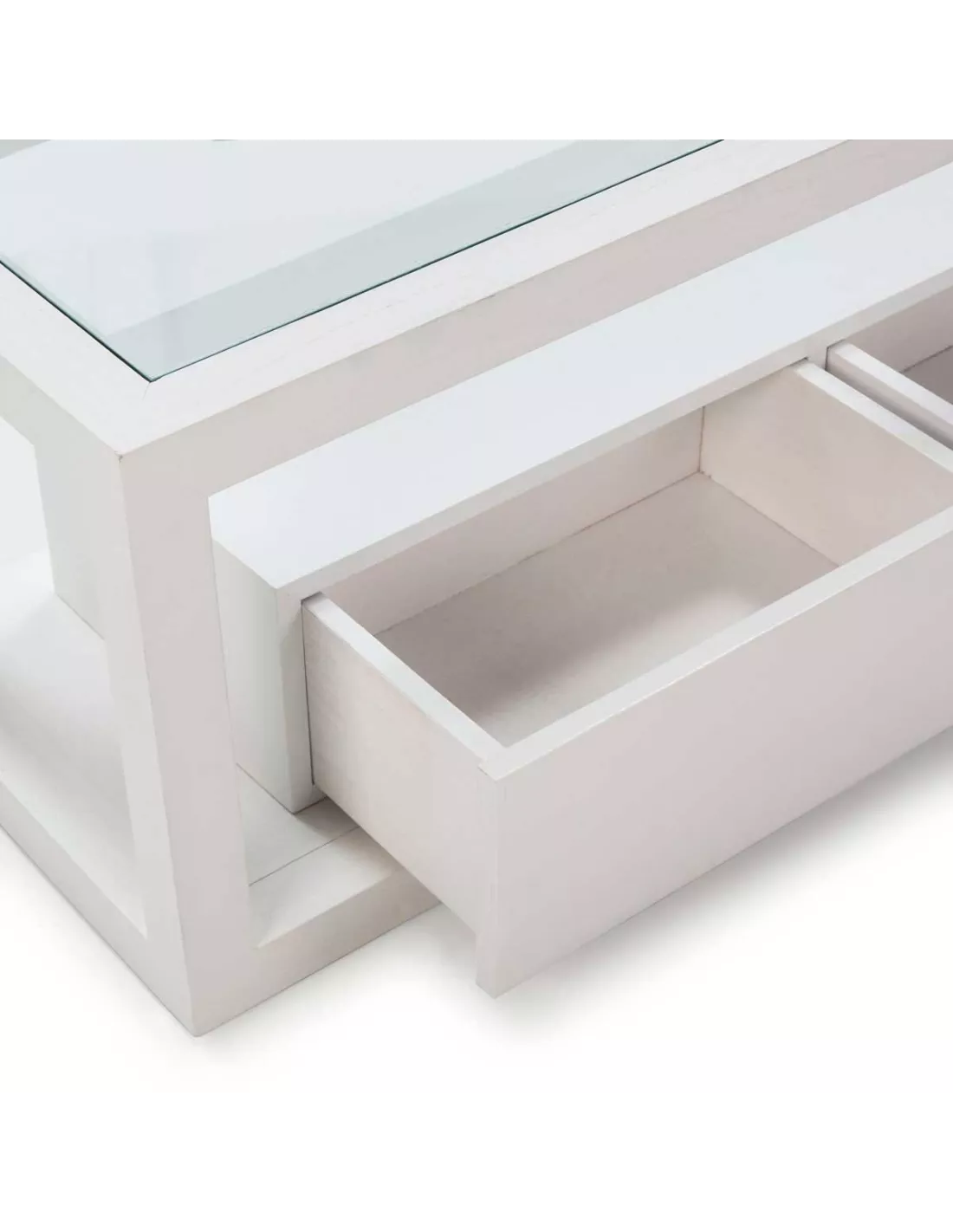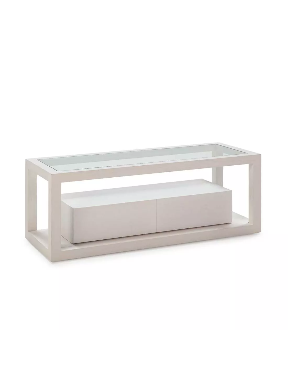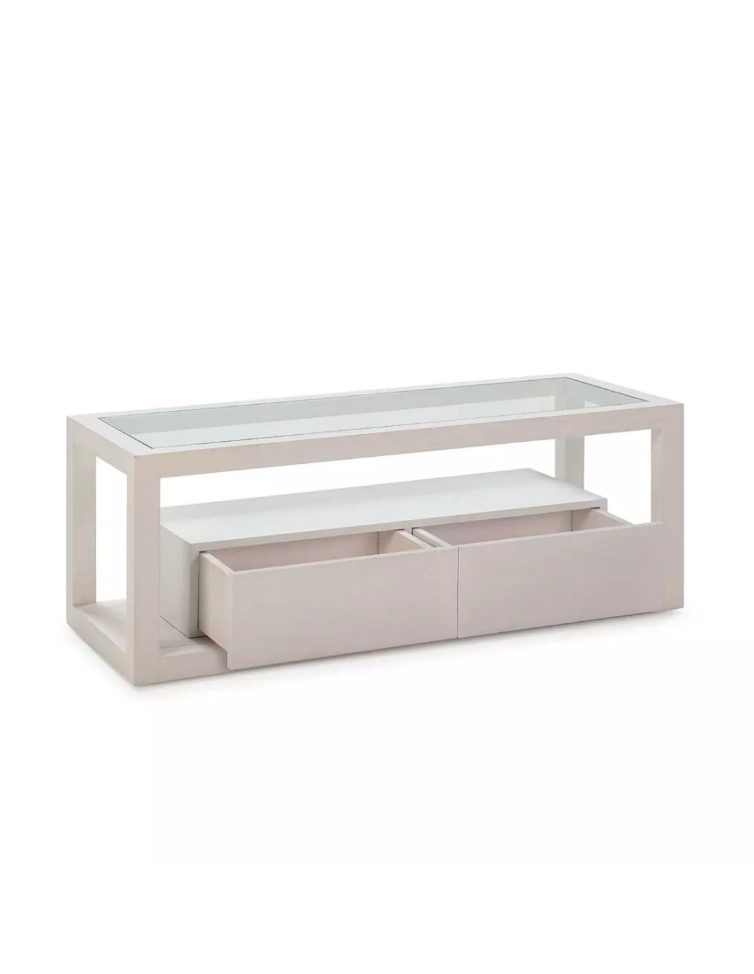 Meuble TV en bois blanc et en verre 2 tiroirs 120cm, Thai Natura