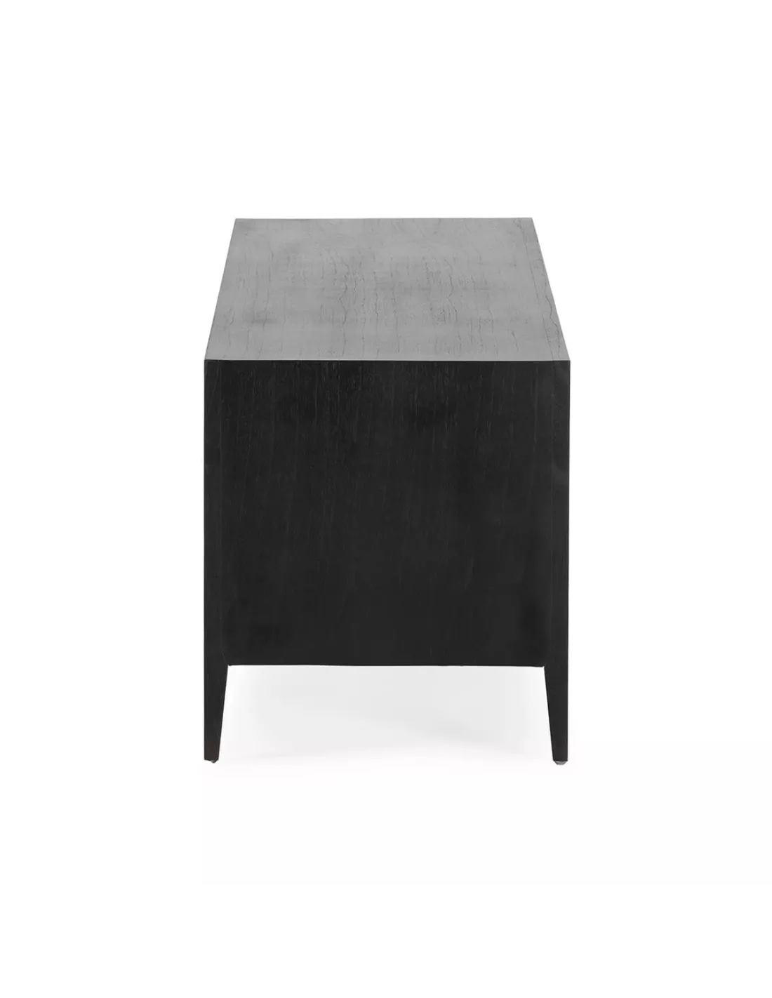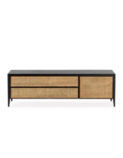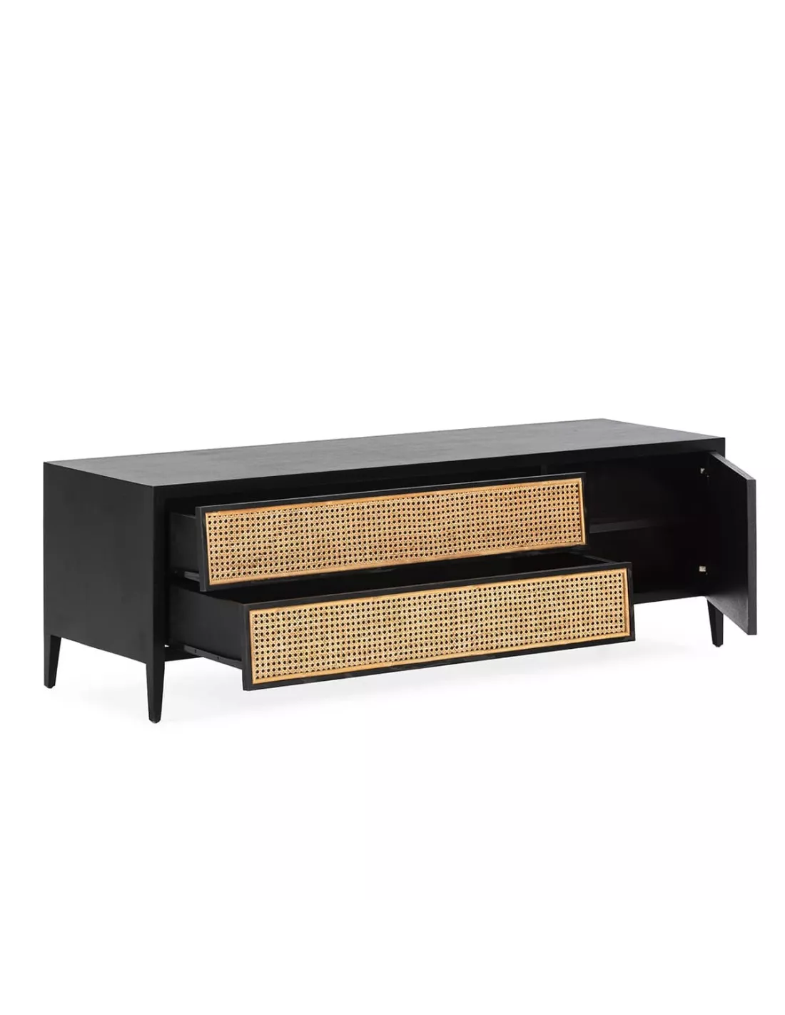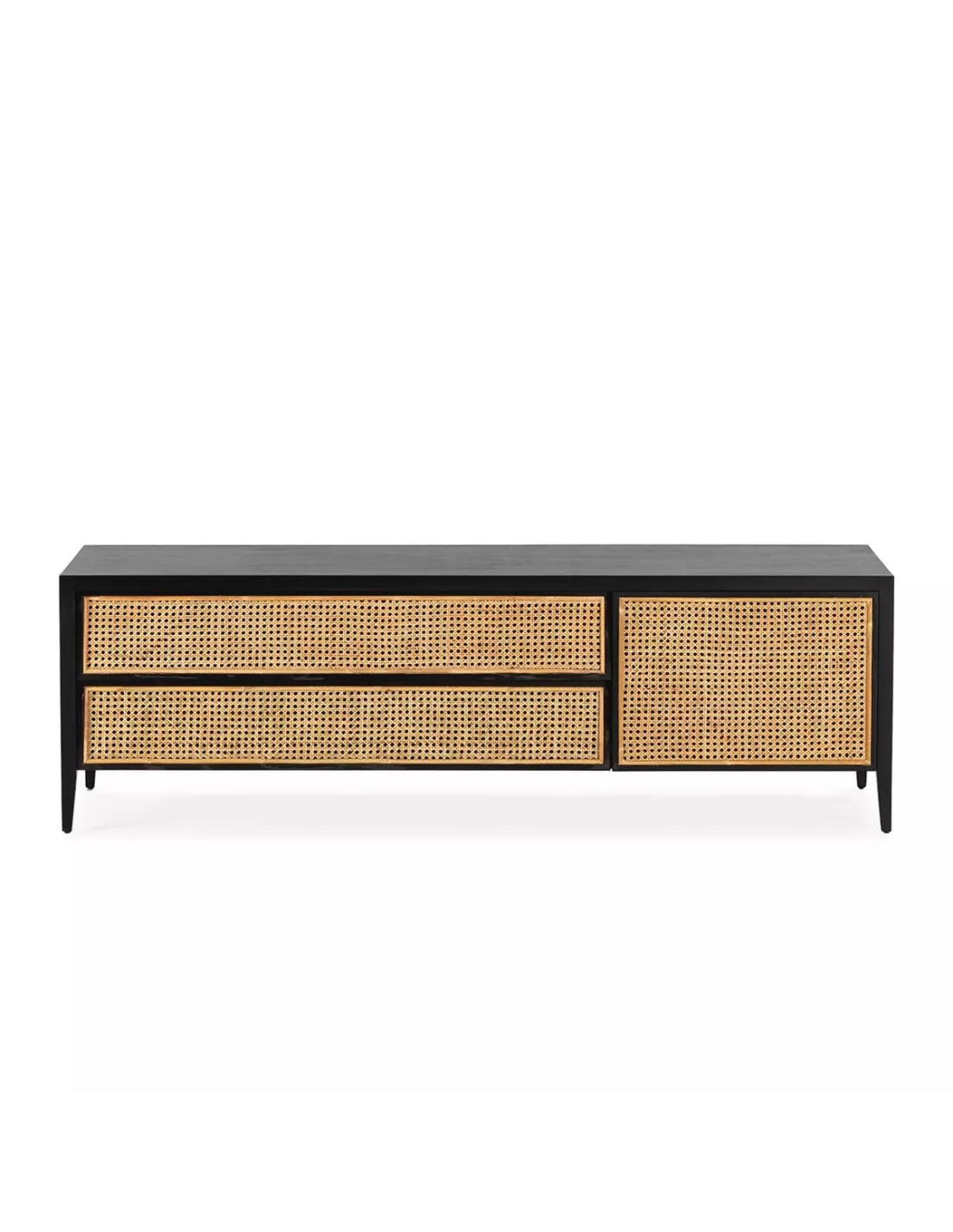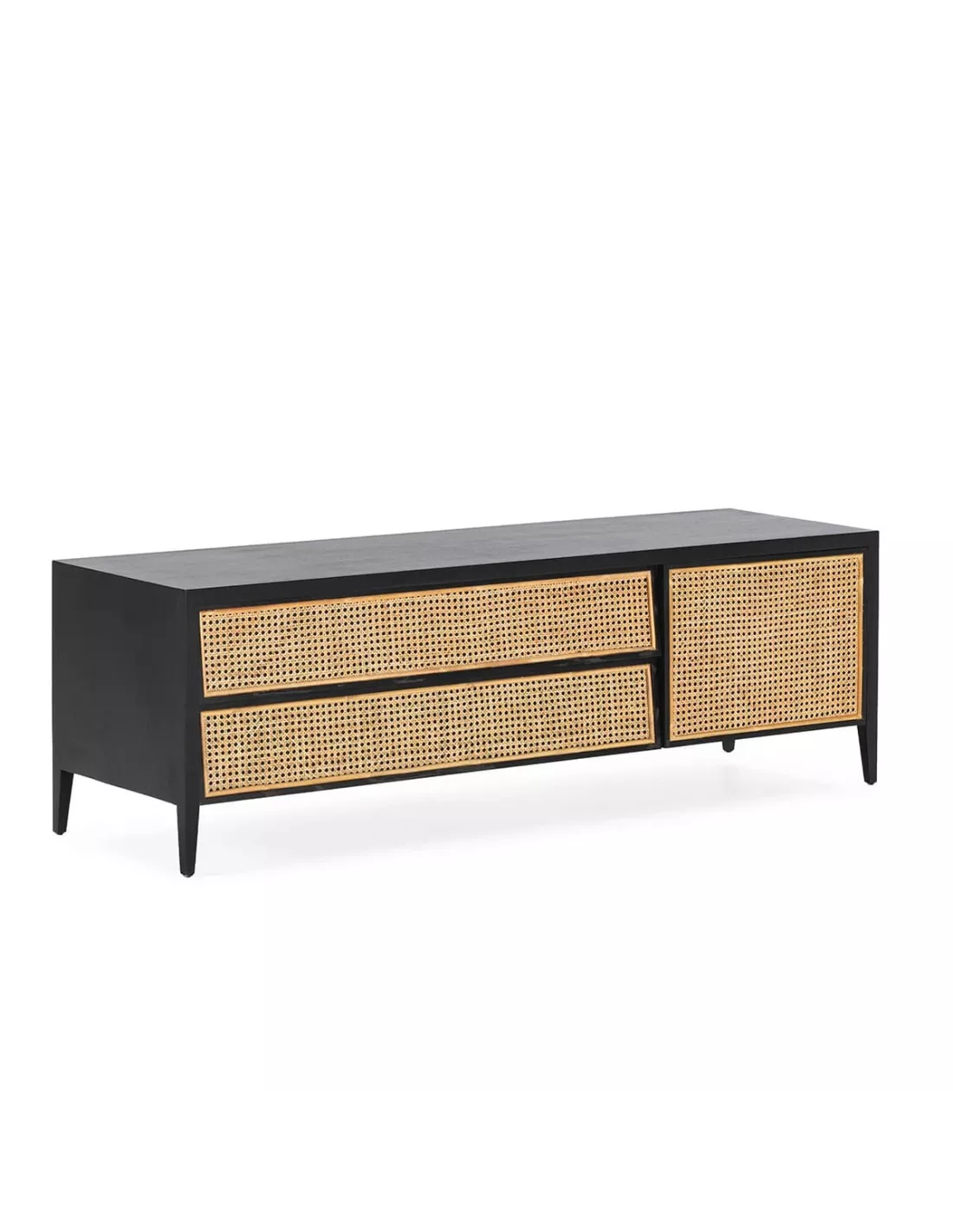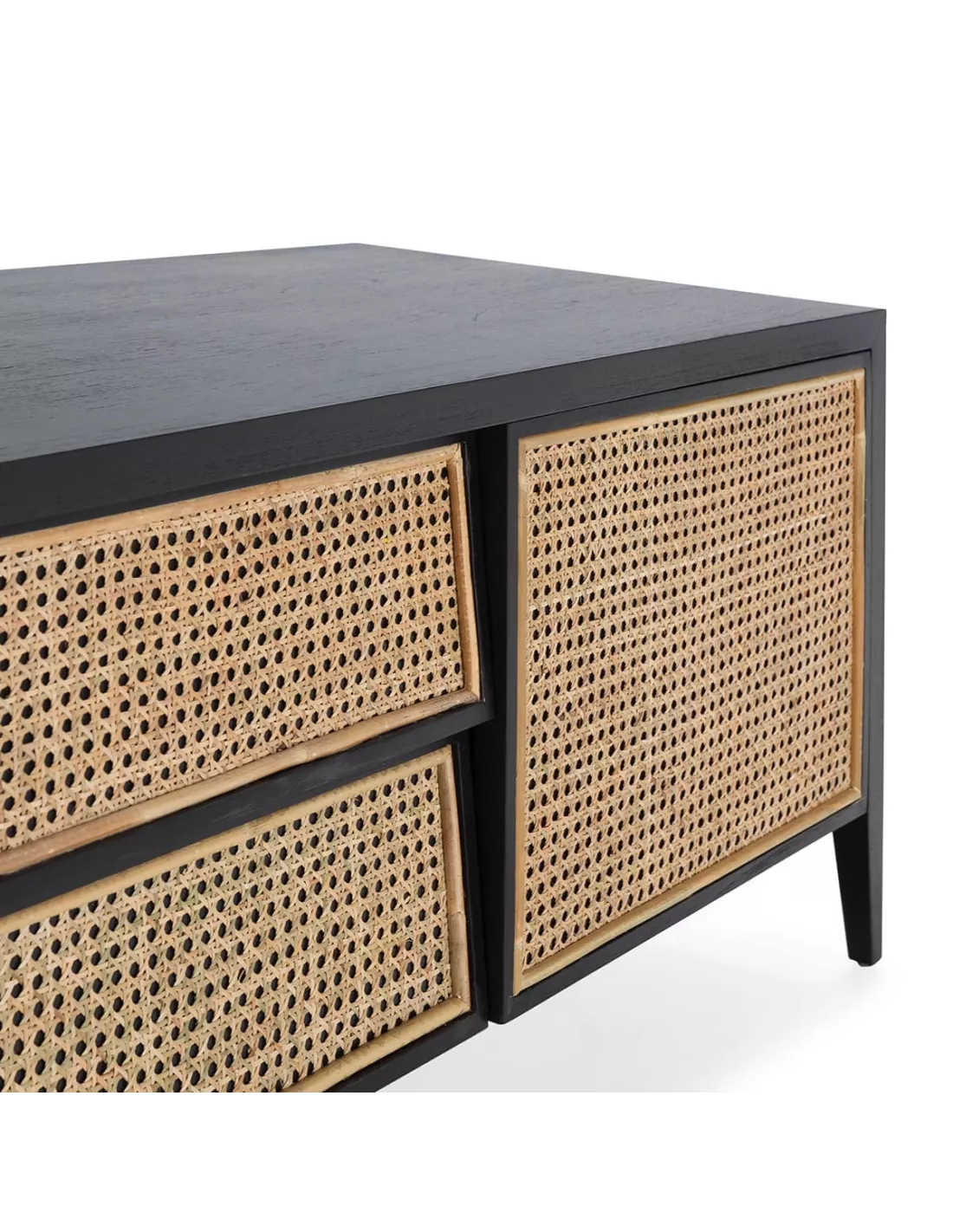 Meuble TV noir/naturel en bois cèdre et cannage de rotin, Thai Natura
