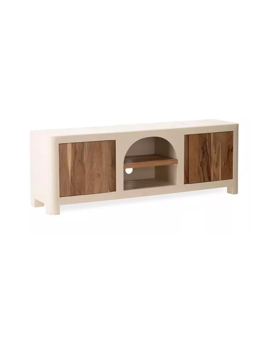 La blancheur de la structure du meuble TV Comino évoque les villages typiques où le blanc des murs se mêle aux couleurs éclatantes des bougainvilliers.
