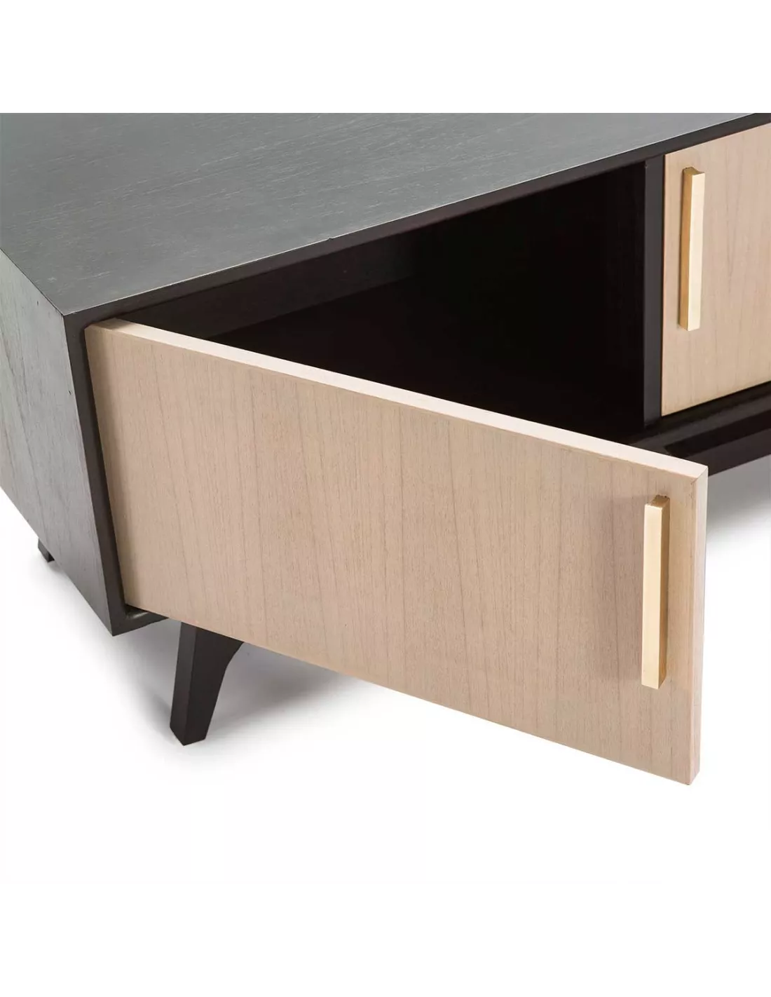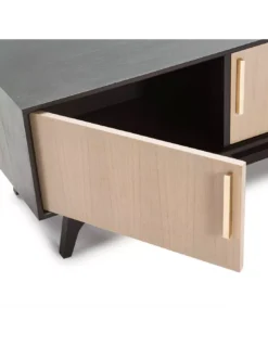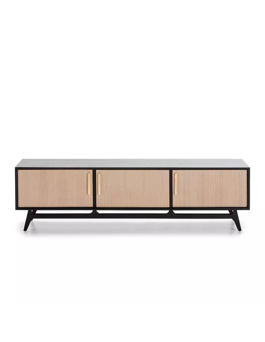 Meuble TV en bois naturel légèrement grisé et noir 3 portes 160cm, Thai Natura