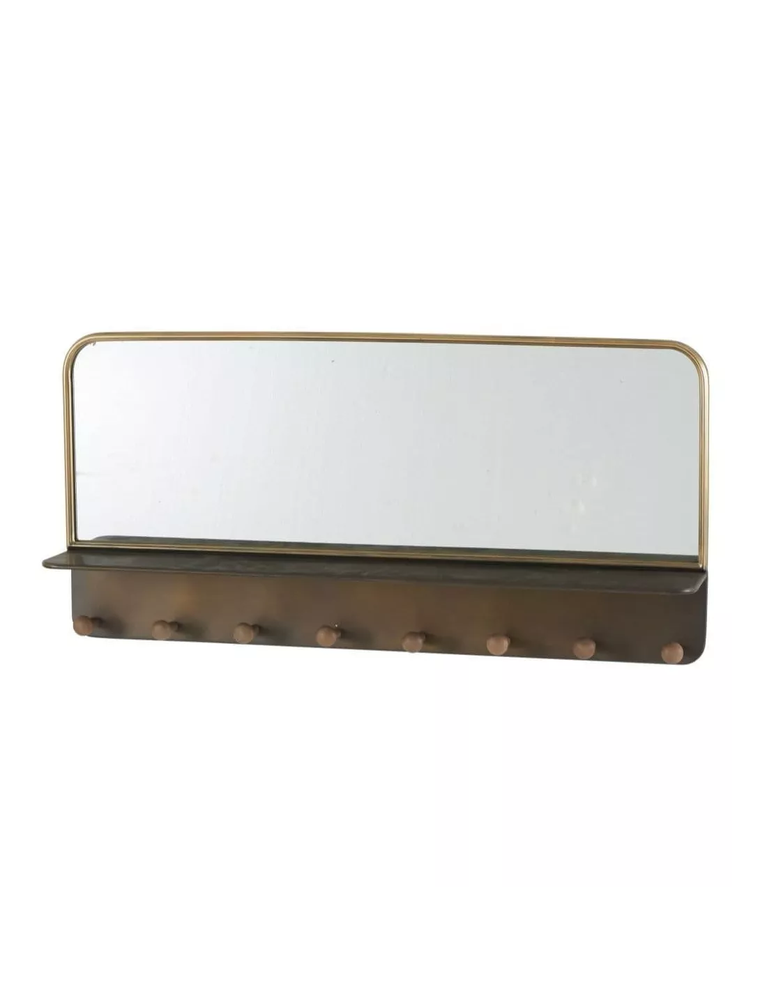 Miroir patères brun à suspendre au mur, Déco en Ligne