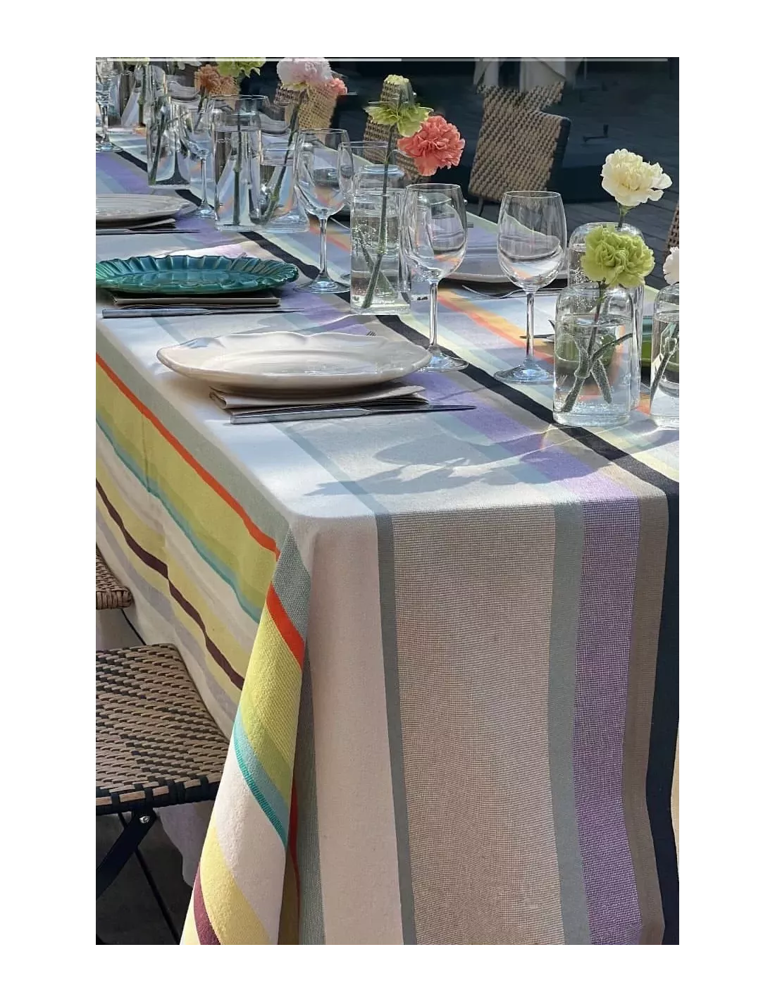 Nappe à rayures en coton fabriquée en France, Les Toiles du Soleil