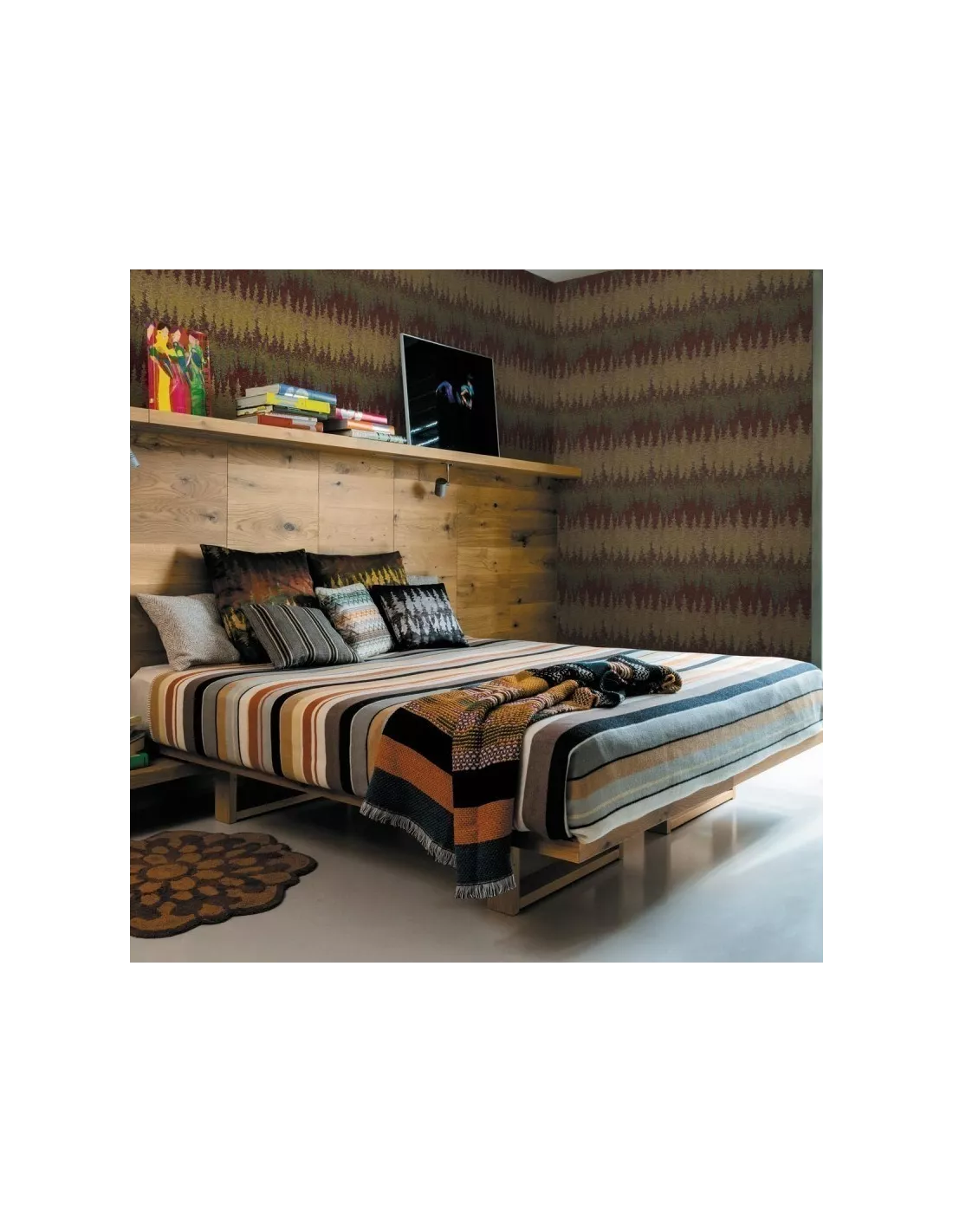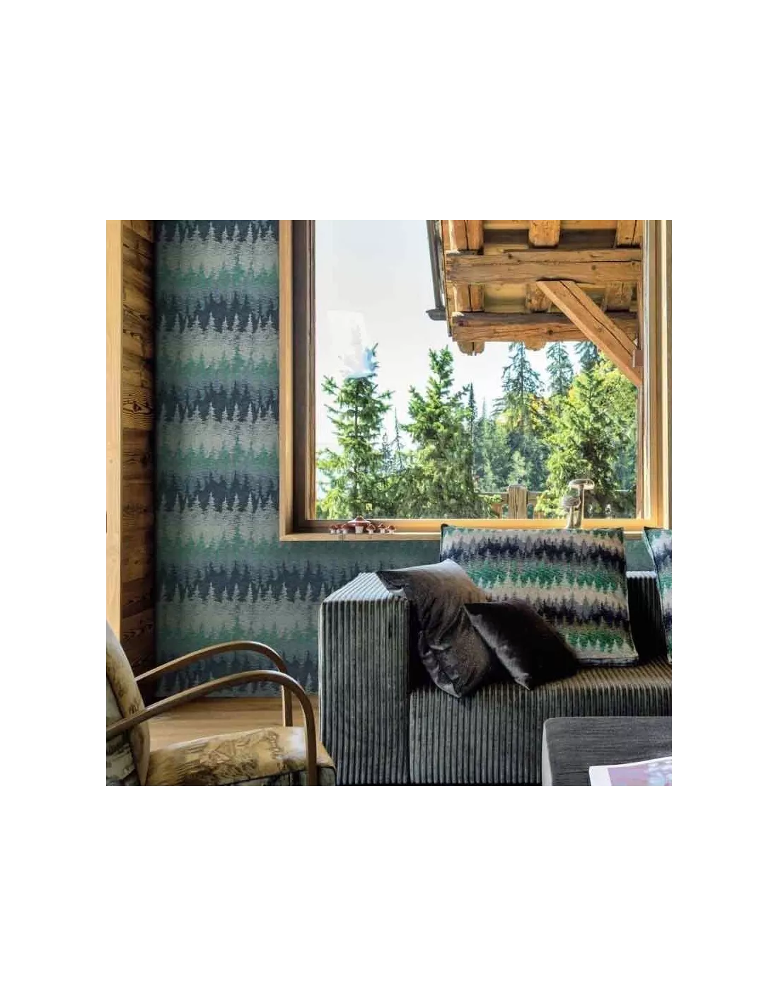 Papier peint camouflage aux frises de formes irrégulières évoquant les forêts de pins des montagnes, Missoni Home