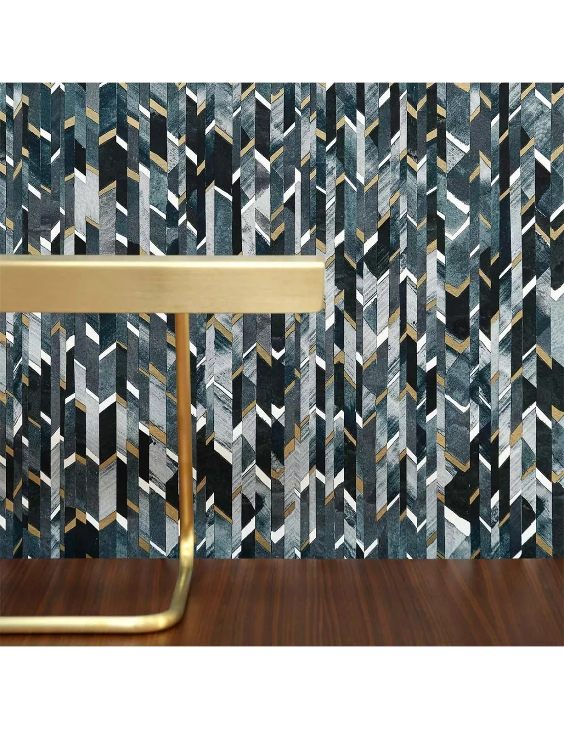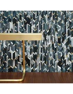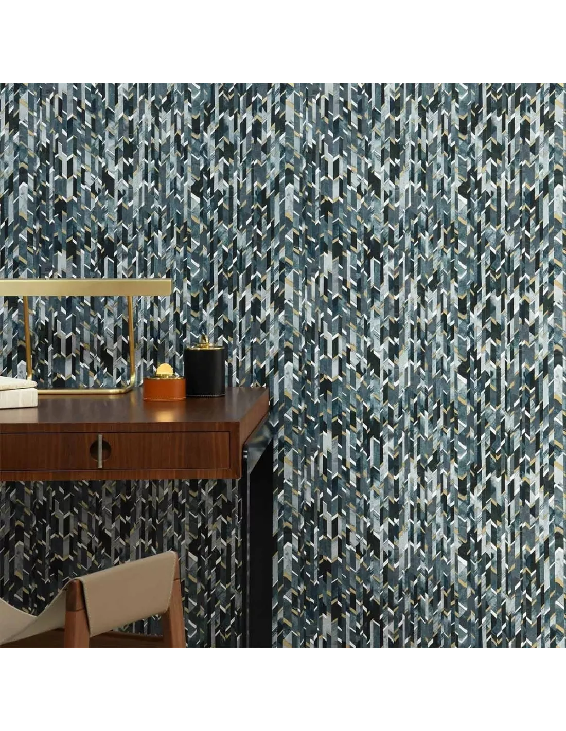 Papier peint géométrique dans les tons ardoise, Lelièvre