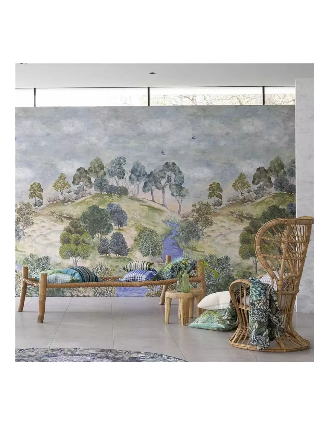 Aux allures de peinture à l’huile, le motif du panneau Bandipur Sky représente un paysage pittoresque. Inspiré des anciennes peintures miniatures indiennes, il dessine un ruisseau dans une vallée arborée verdoyante. Des oiseaux en plein vol apportent du mouvement et de la vie à l’ensemble. Ce revêtement mural Designers Guild apporte un morceau de nature aux décors intérieurs.