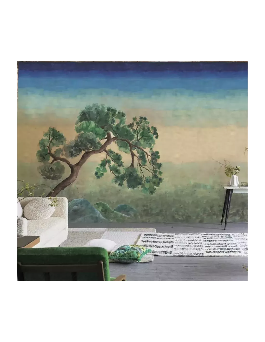 La conception modulaire vous permet de l’adapter à la taille de votre mur, en le raccordant d’un côté à l’autre, ou en le coupant en hauteur si nécessaire. Une version dégradée unie et coordonnée est également disponible pour une approche plus subtile. Laissez-vous captiver par la force de la nature avec cette œuvre artistique qui célèbre la détermination de cet arbre emblématique.