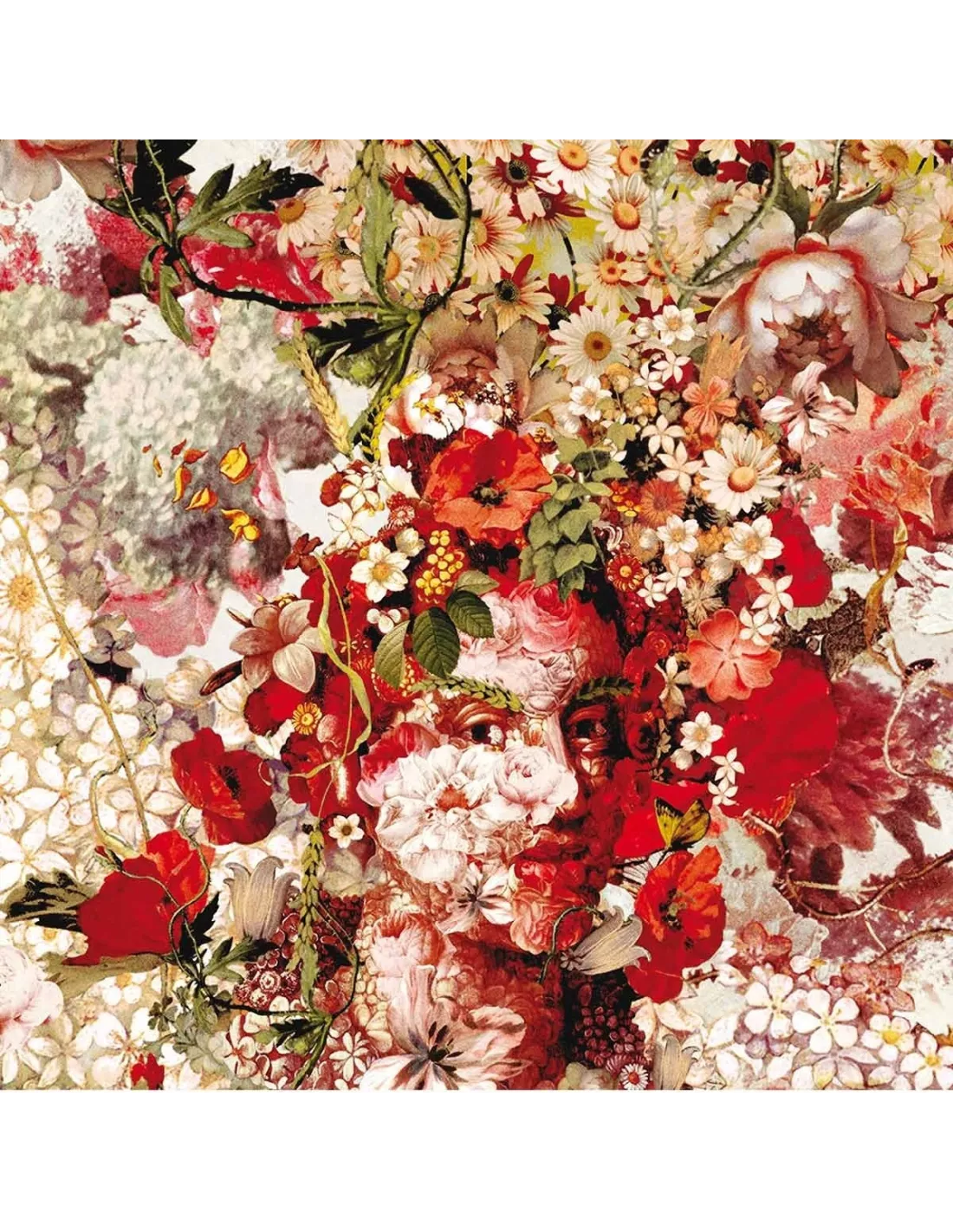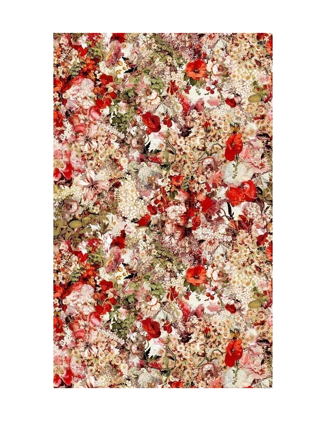Papier peint vinyle montrant de magnifiques pâquerettes pivoines coquelicots aux couleurs vibrantes, Jean Paul Gaultier