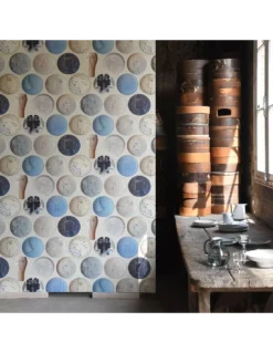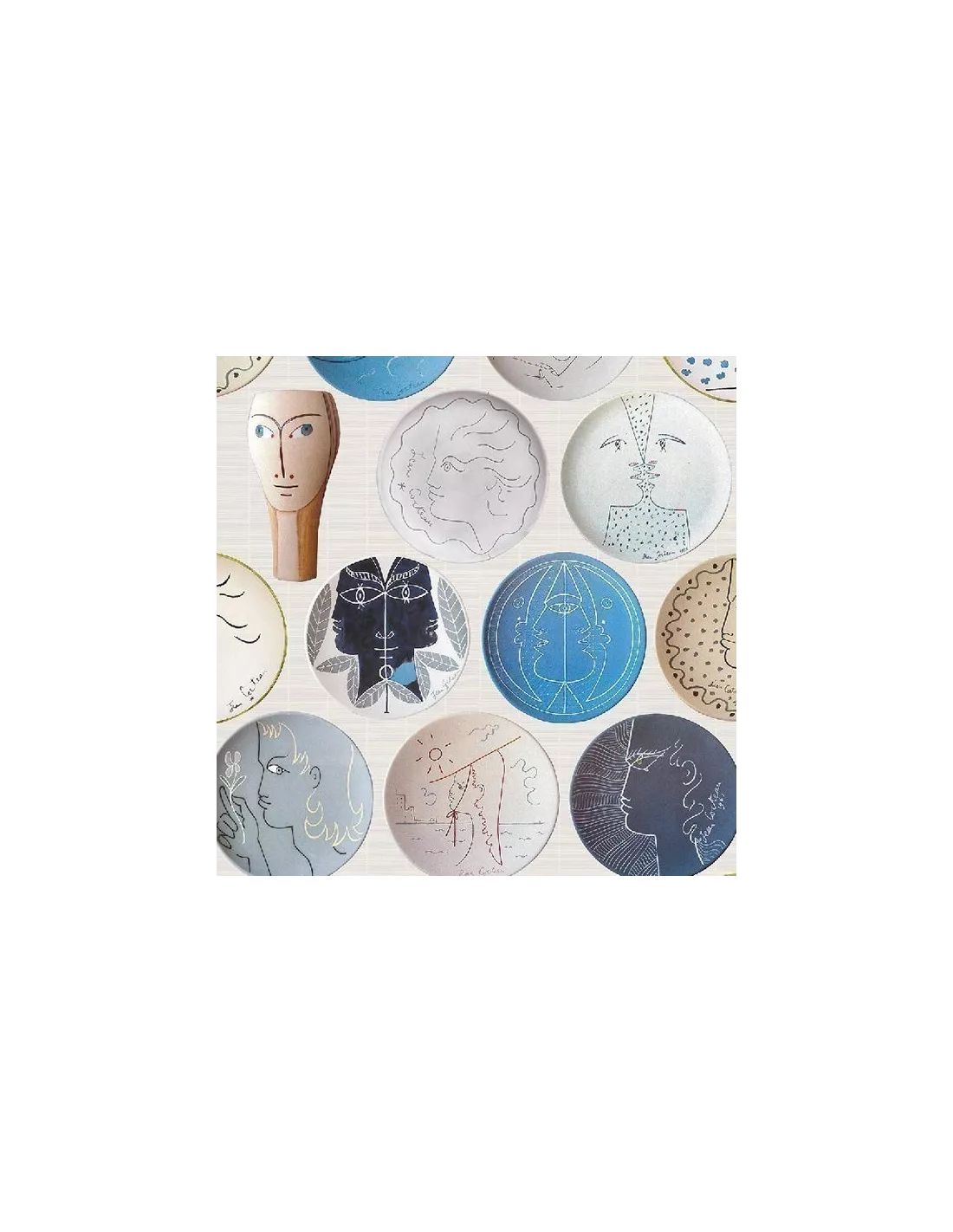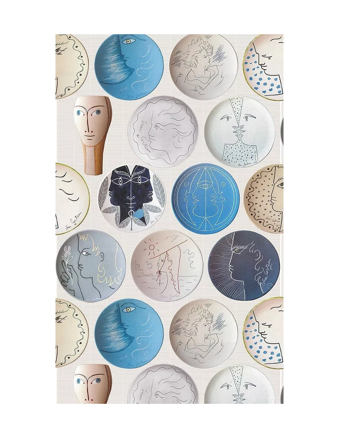 Papier peint vinyle arborant une sélection de céramiques et poteries emblématiques de Jean Cocteau, Lelièvre