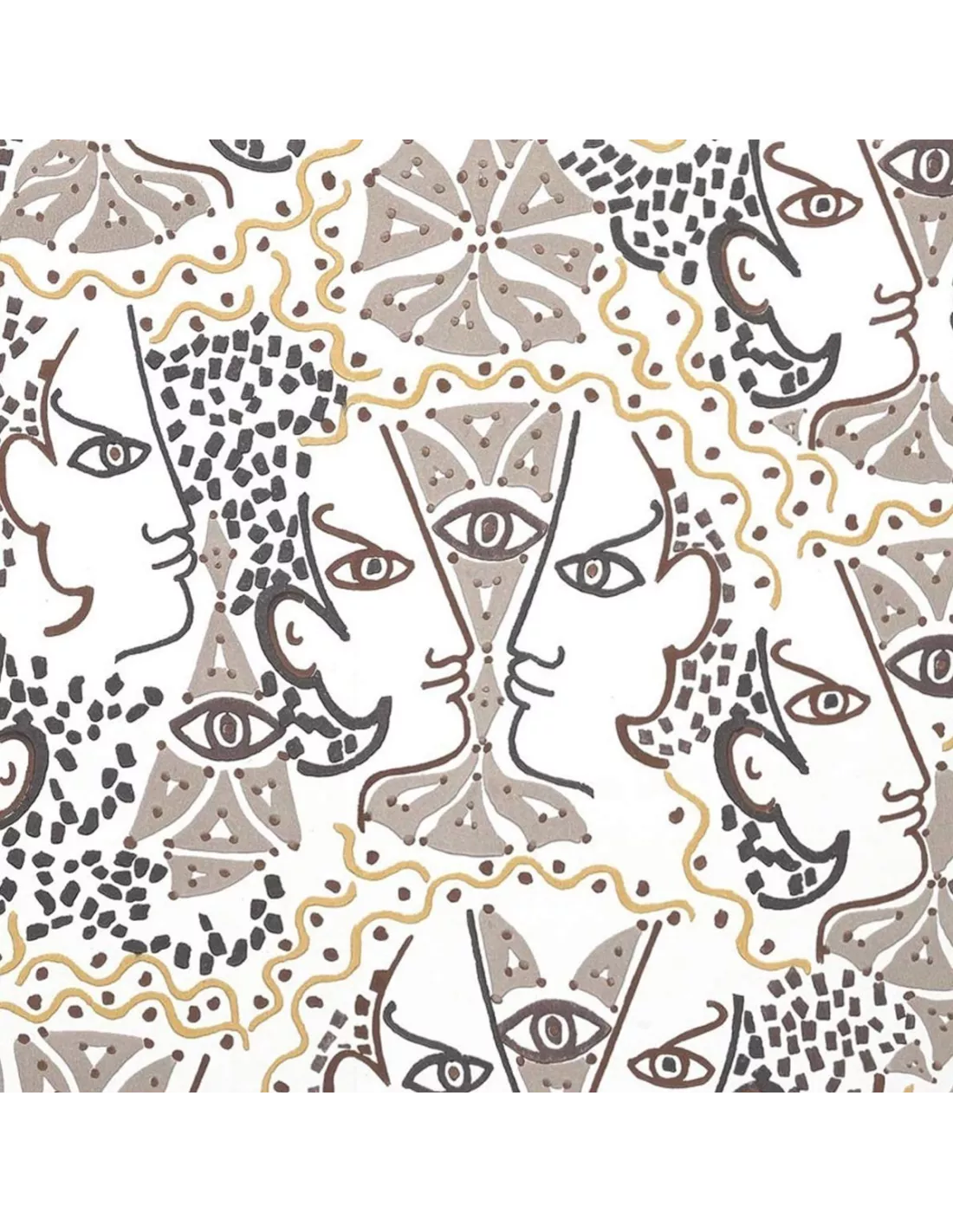 Papier peint vinyle taupe représentant deux visages de profil face-à-face qui ne font plus qu’un au milieu sous forme d’un œil de cyclope, Lelièvre