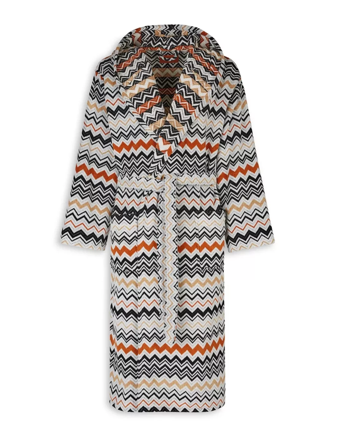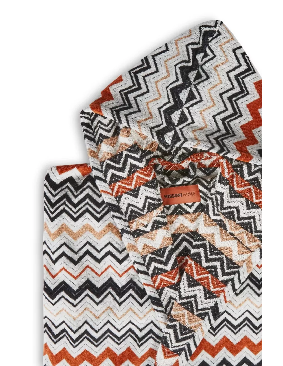 Peignoir capuche aux tons pastels et brun en velours de coton, Missoni Home