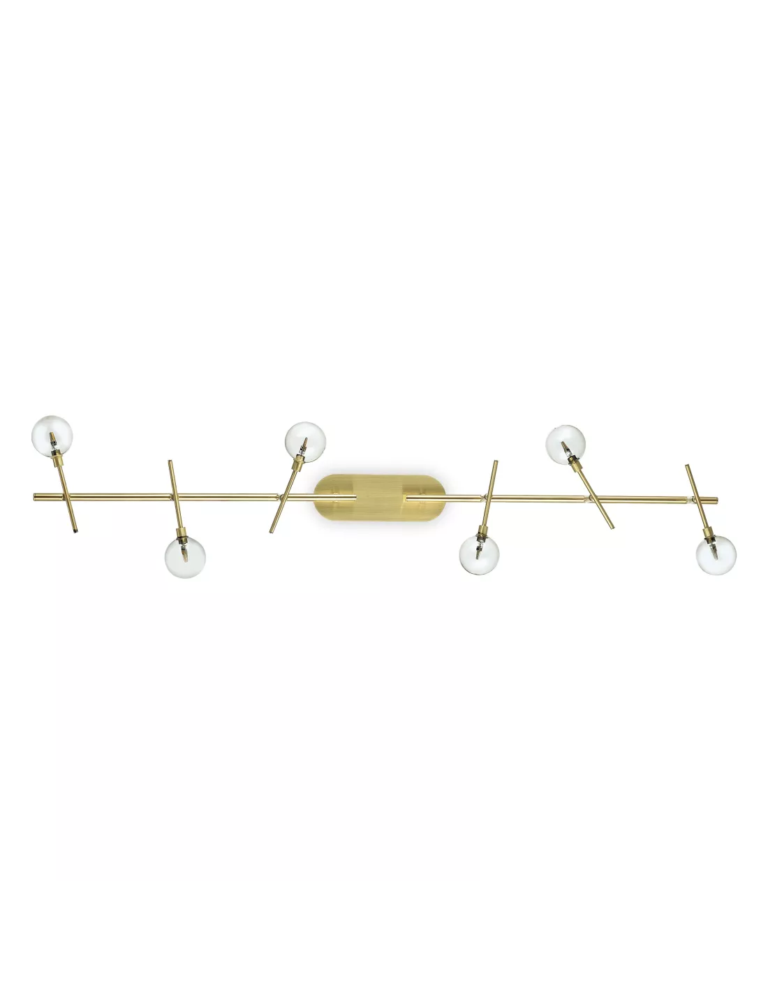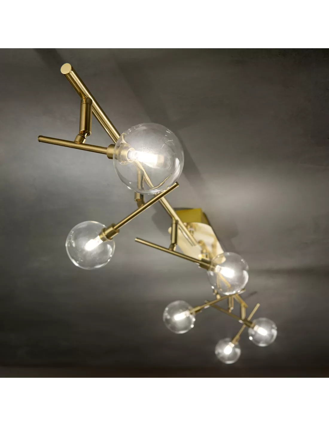 - Structure en métal finition laiton mat. Diffuseurs orientables en verre soufflé transparent.